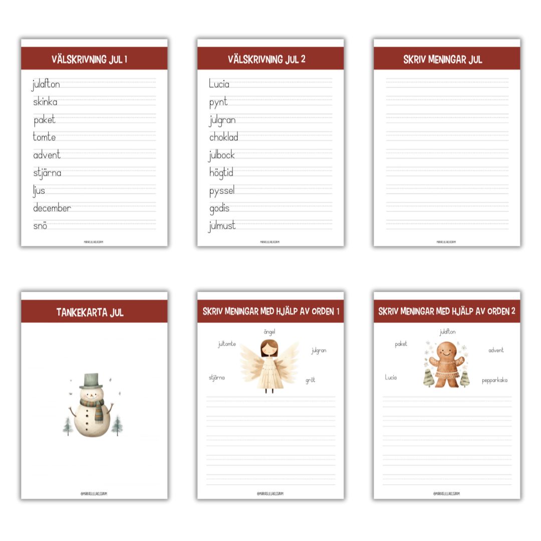 Skriv meningar – blad för orden i välskrivning 1,2