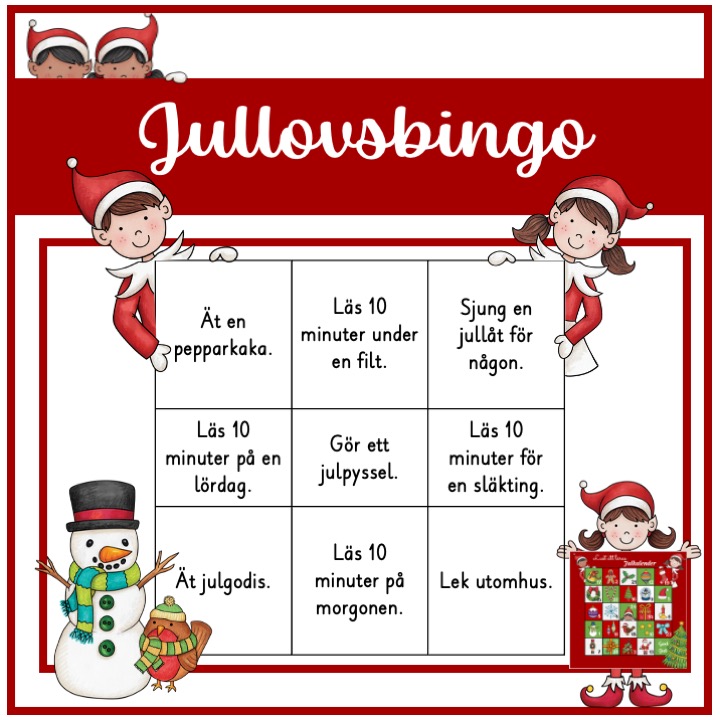 Ett jullovsbingo perfekt att ge till elverna inför jullovet.