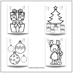 Vi har skapat 4 olika julbilder som ska färgläggas.
