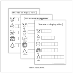 Eleverna får skriva juliga ord och färglägga en bild till ordet.