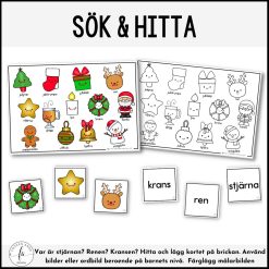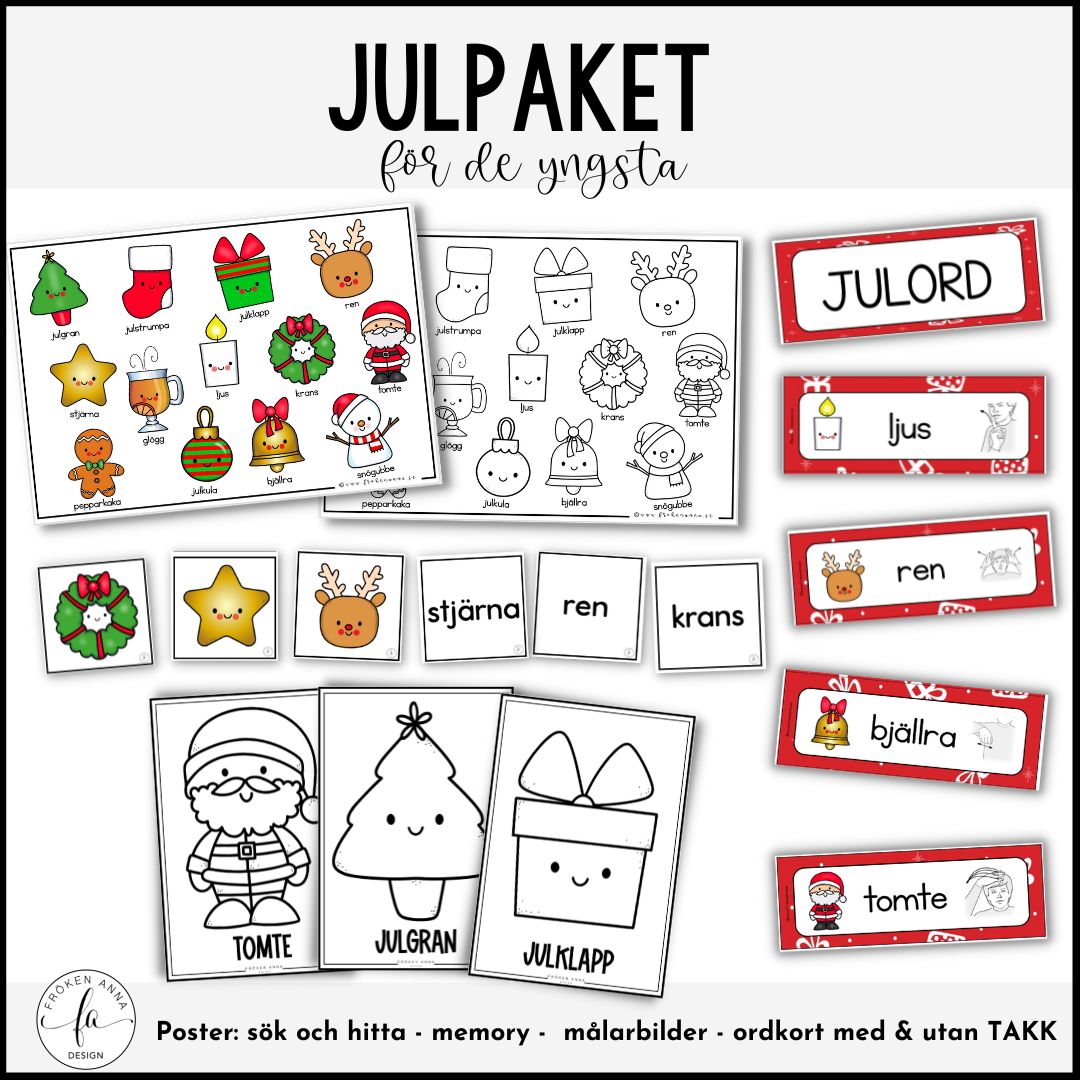 Ett julpaket med blandat material för de yngsta baren i förskolan – åk 2. Materialet kan anpassas beroende på ålder.