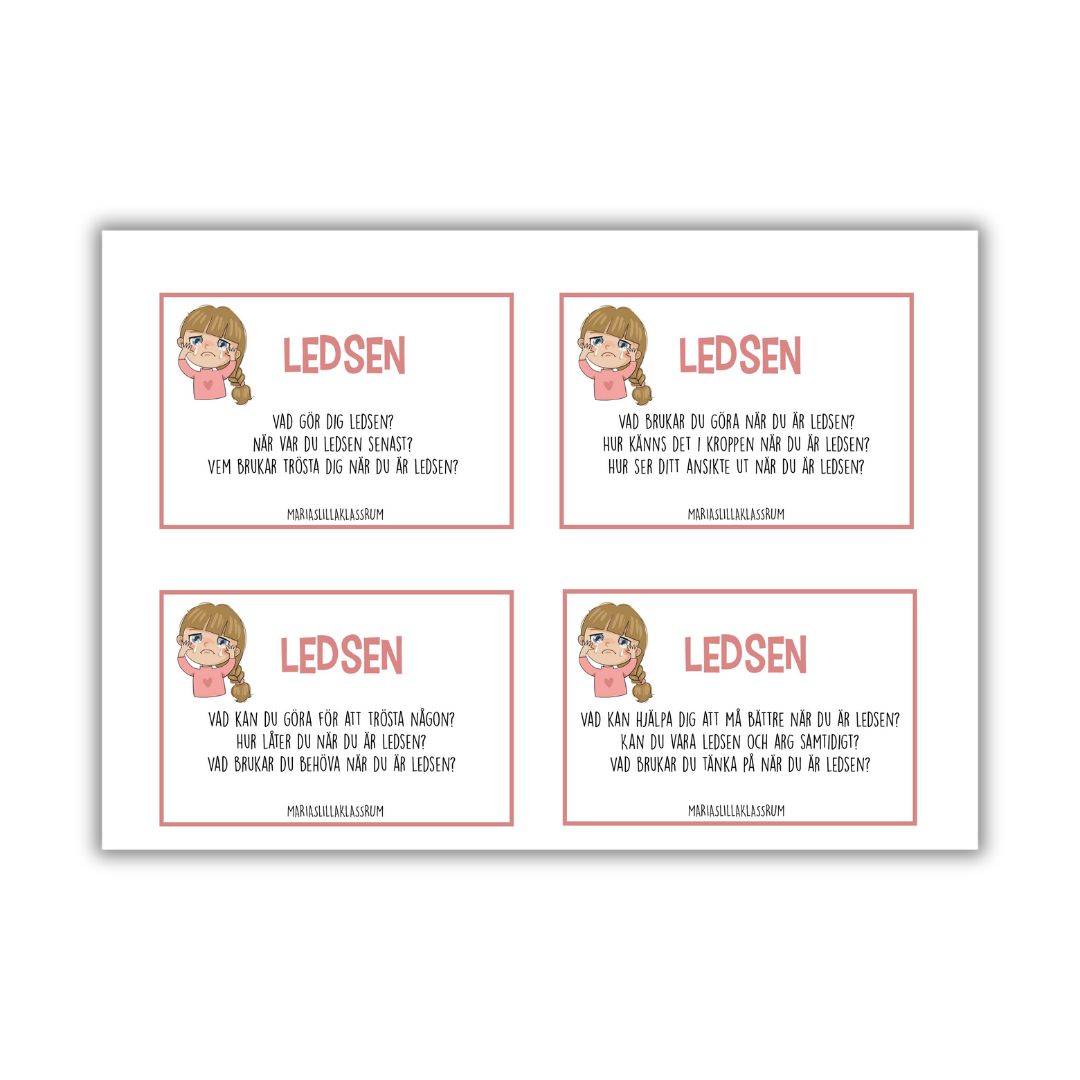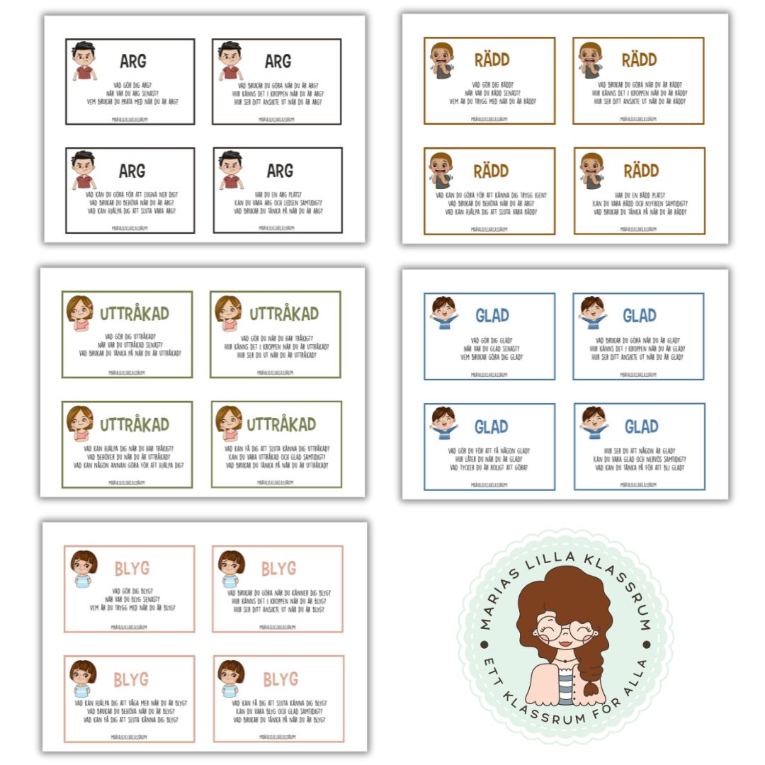 Korten kan också användas i en känslolåda, som stöd i samtal med enskilda elever eller som en del av ett temaarbete om känslor och empati.