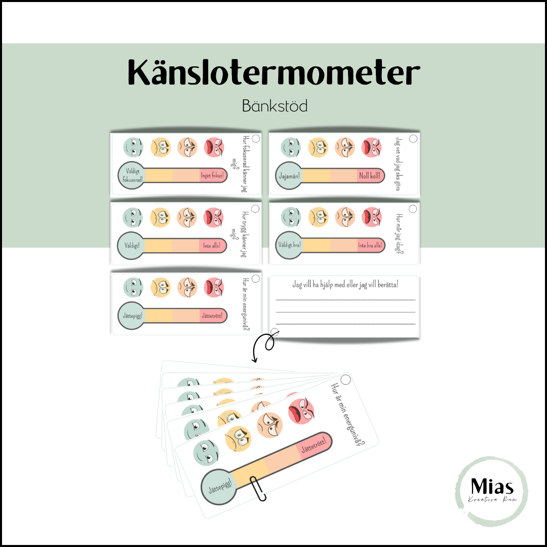Här kommer ett stöd som eleven kan ha på sina bänkar. De olika korten tar upp olika saker som hur eleven mår, hur fokuserad hen känner sig, om hen har förstått uppgiften med mera. Laminera och sätt ihop. Låt eleverna ha stödet på deras bänk och genom ett gem visa hur hen känner.