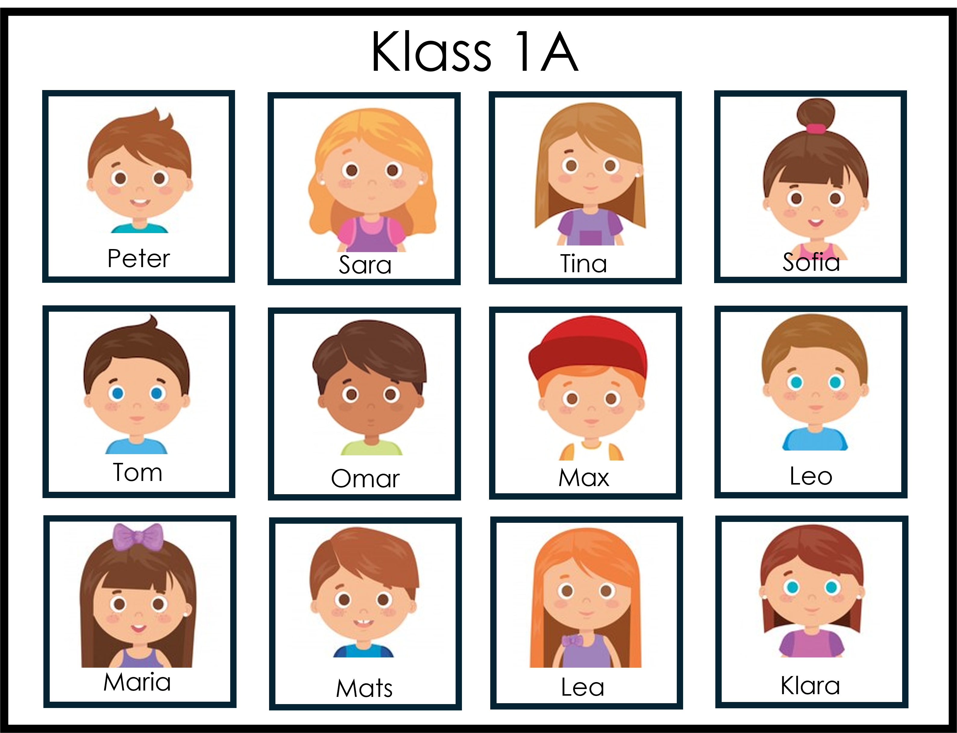 Materialet innehåller 1 klassfoto på 1A, 12 bildkort och 12 meningskort.