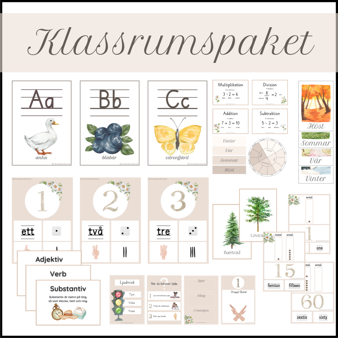 Klassrumspaket! Fint tema med realistiska akvarellbilder och jordnära färger för ett lugnt och harmoniskt intryck i klassrummet. I paketet ingår: