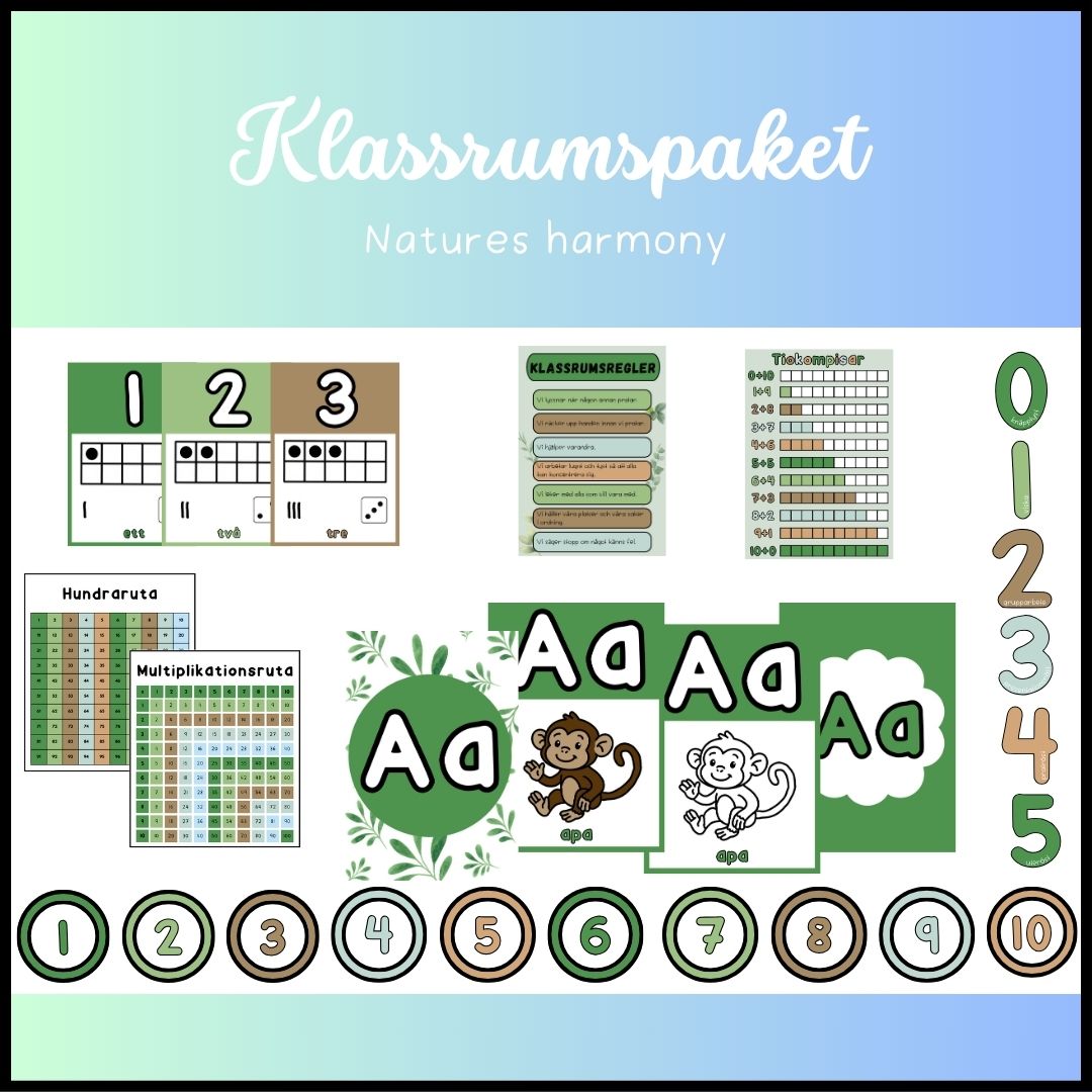 Här är ett stort klassrumspaket i det jordnära färgtemat Natures Harmony.
