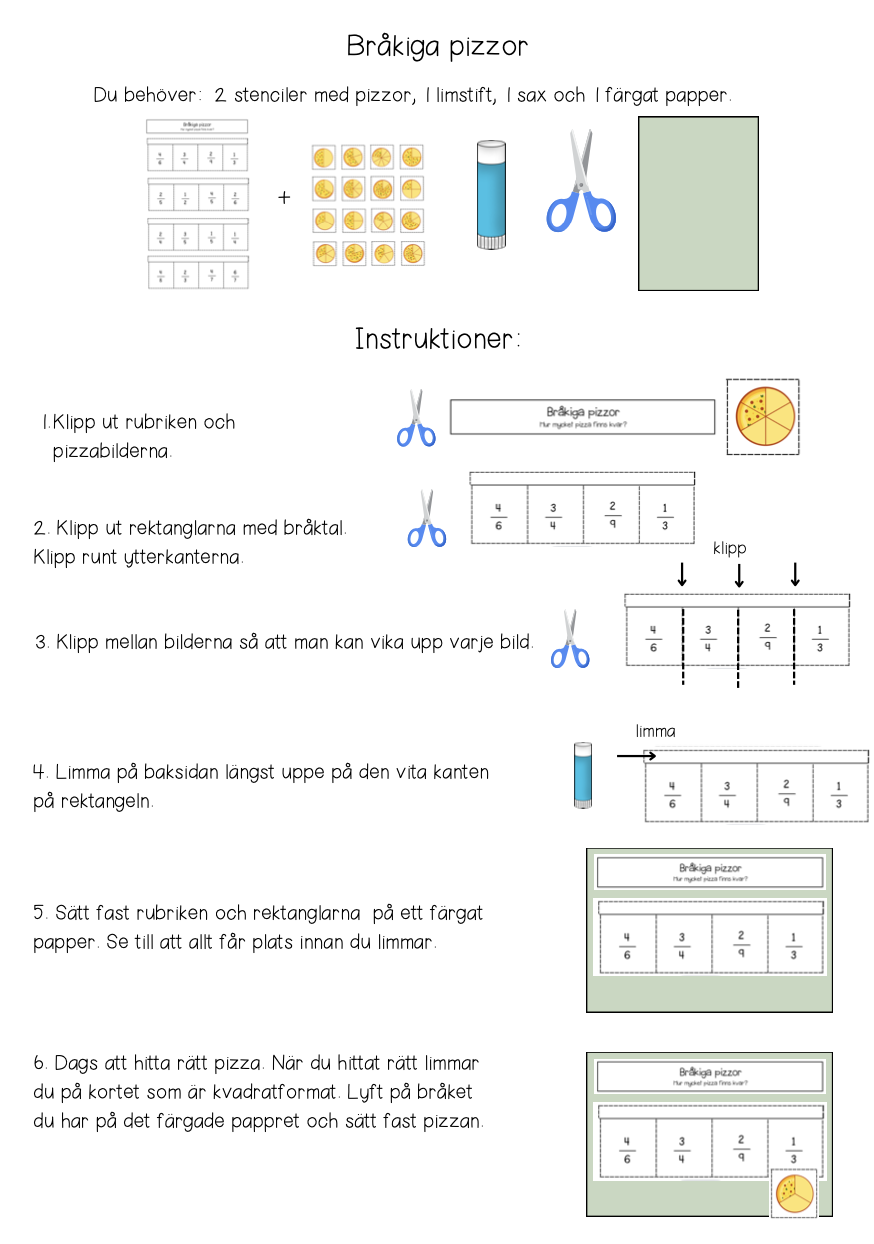 Klipp ut pizzabilderna och limma fast under rätt bråktal.