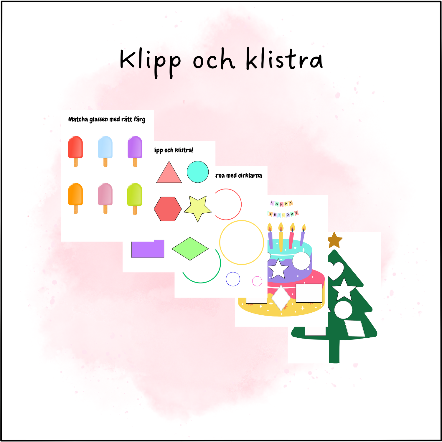 Till varje arbetsblad kommer det med en extra kopia på formerna som ni ska klippa ut till era små barn. Sedan ska då barnen få lägga rätt utklippta form eller figur på rätt ställe på stencilen. Om man vill och har barn som är bekväma med att klippa så kan de klippa ut själva. Allt är upp till er!