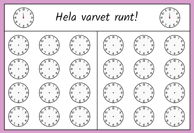 Ett enkelt och snabbspelat spel med mycket färdighetsträning av klockan. Mycket enkelt för eleverna att spela på sin kunskapsnivå av klockan. Spelet kan varieras och ge nya utmaningar.