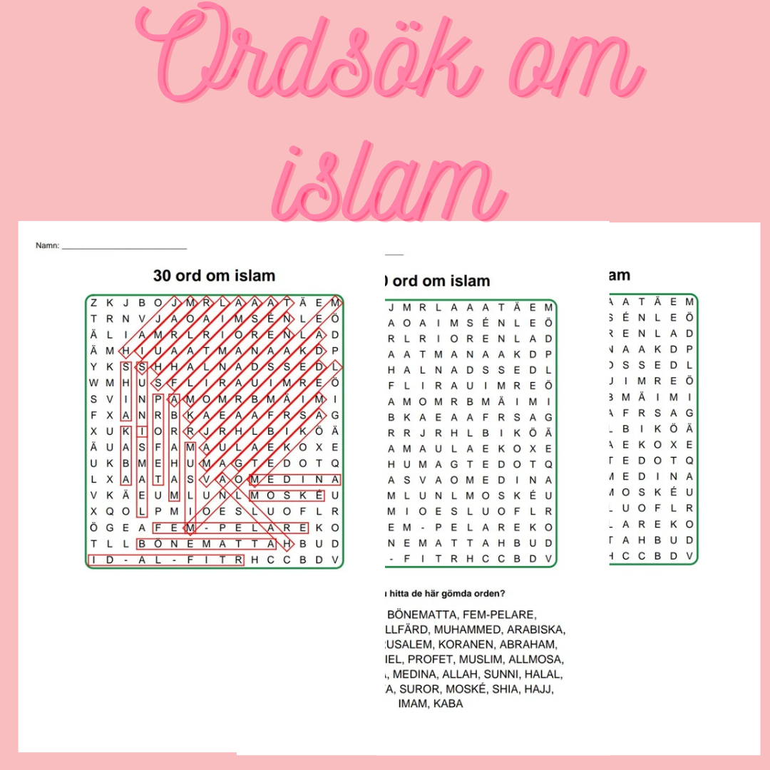 Extrauppgifter till religionslektionerna där eleven får träna på islam. Både ordsök och korsord kommer i en lätt och en lite svårare version. Facit medföljer till båda.