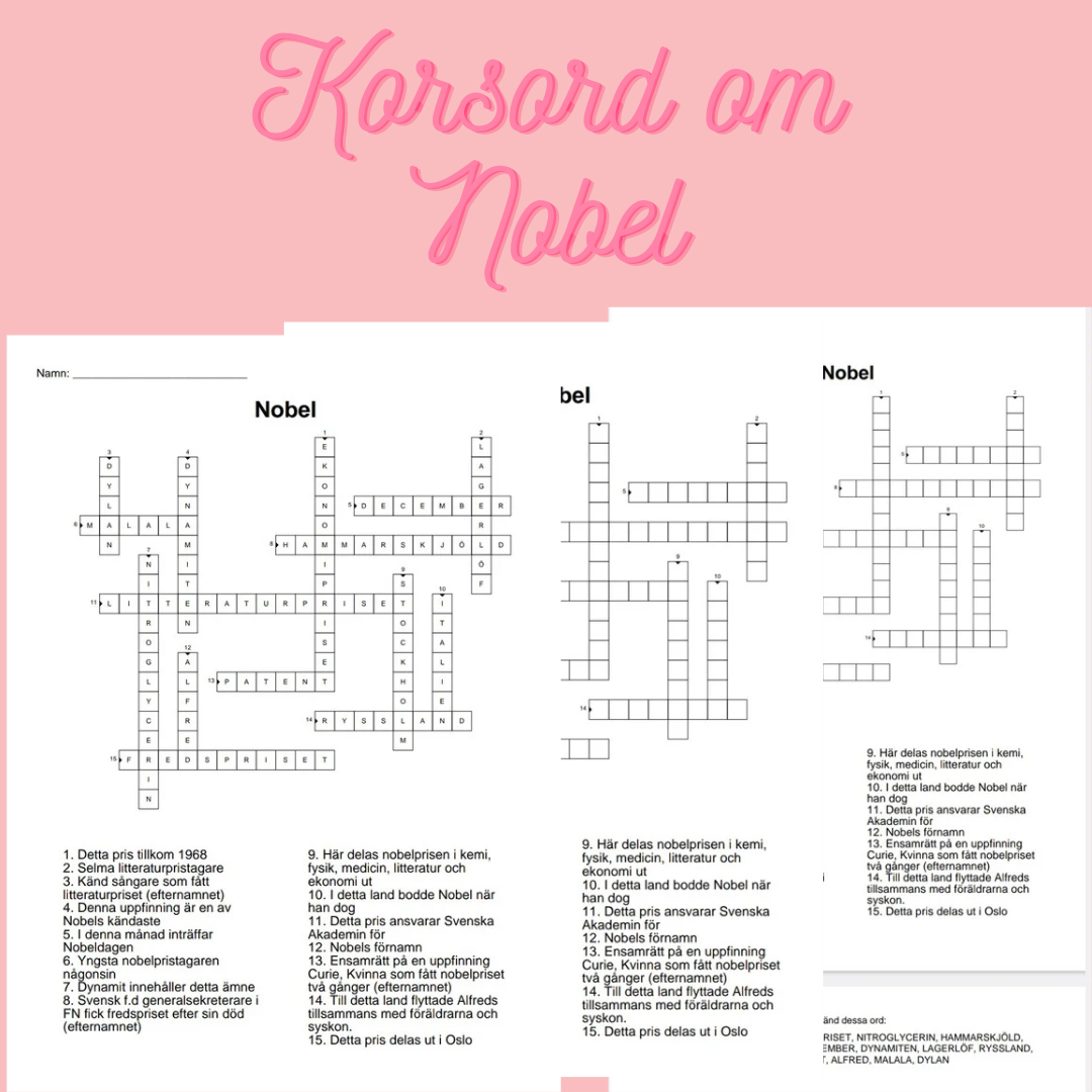 Detta ingår i Korsord och ordsök om Nobel