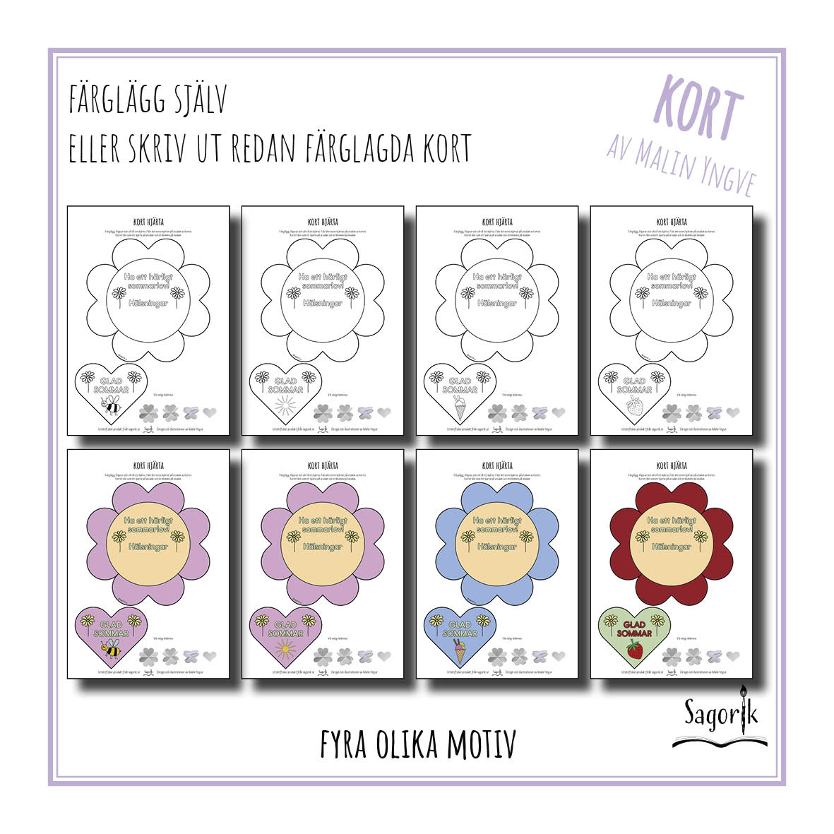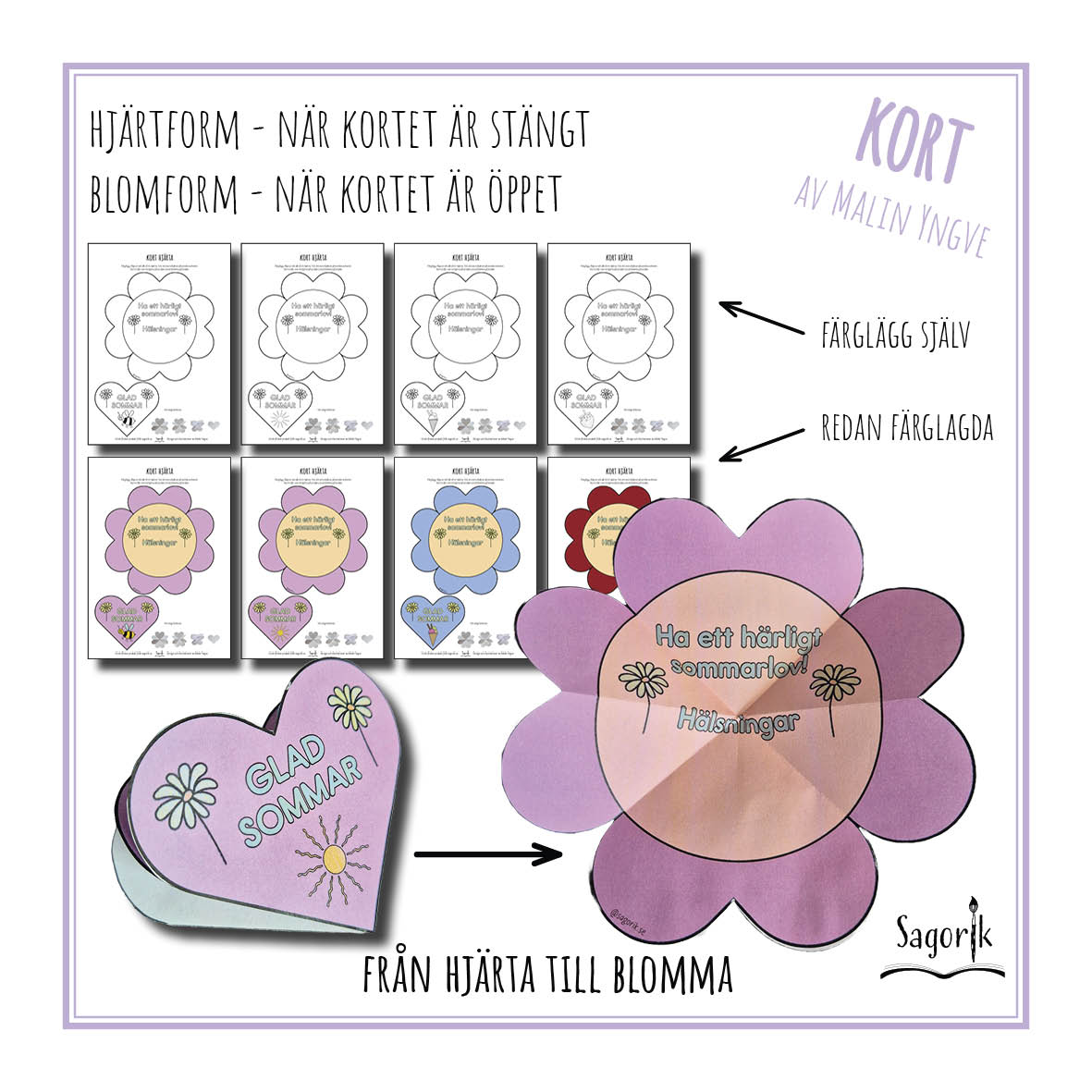 Kort hjärta Sommarhälsning till elever – Ge dina elever en somrig hälsning på skolavslutningen. Passar även för eleverna att ge till sina klasskompisar. För att underlätta för dig får du både en version att färglägga själv, men också en version med redan färglagda kort för att spara tid om du har många att ge korten till.