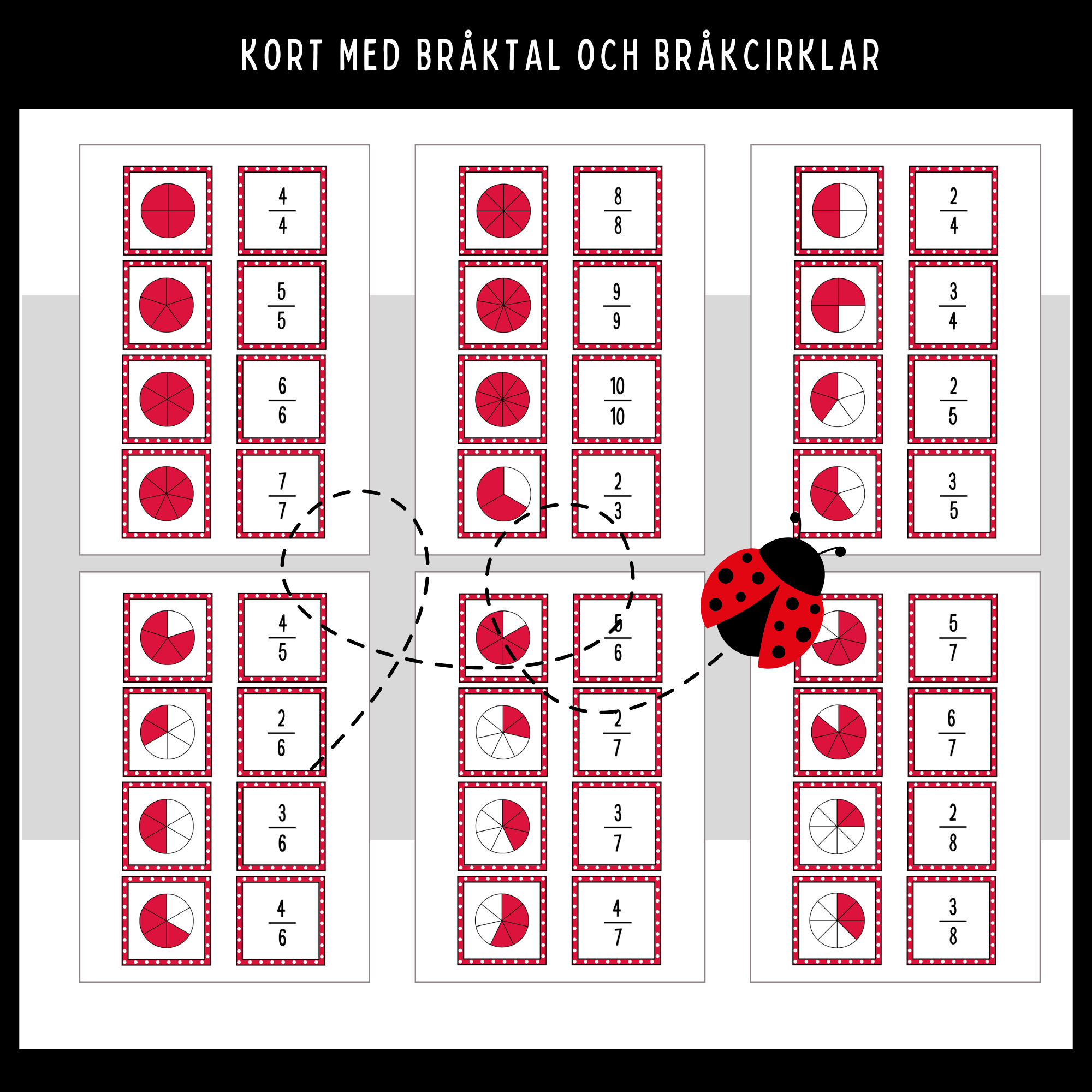 Detta ingår i Kort med bråktal och matchande bråkcirklar