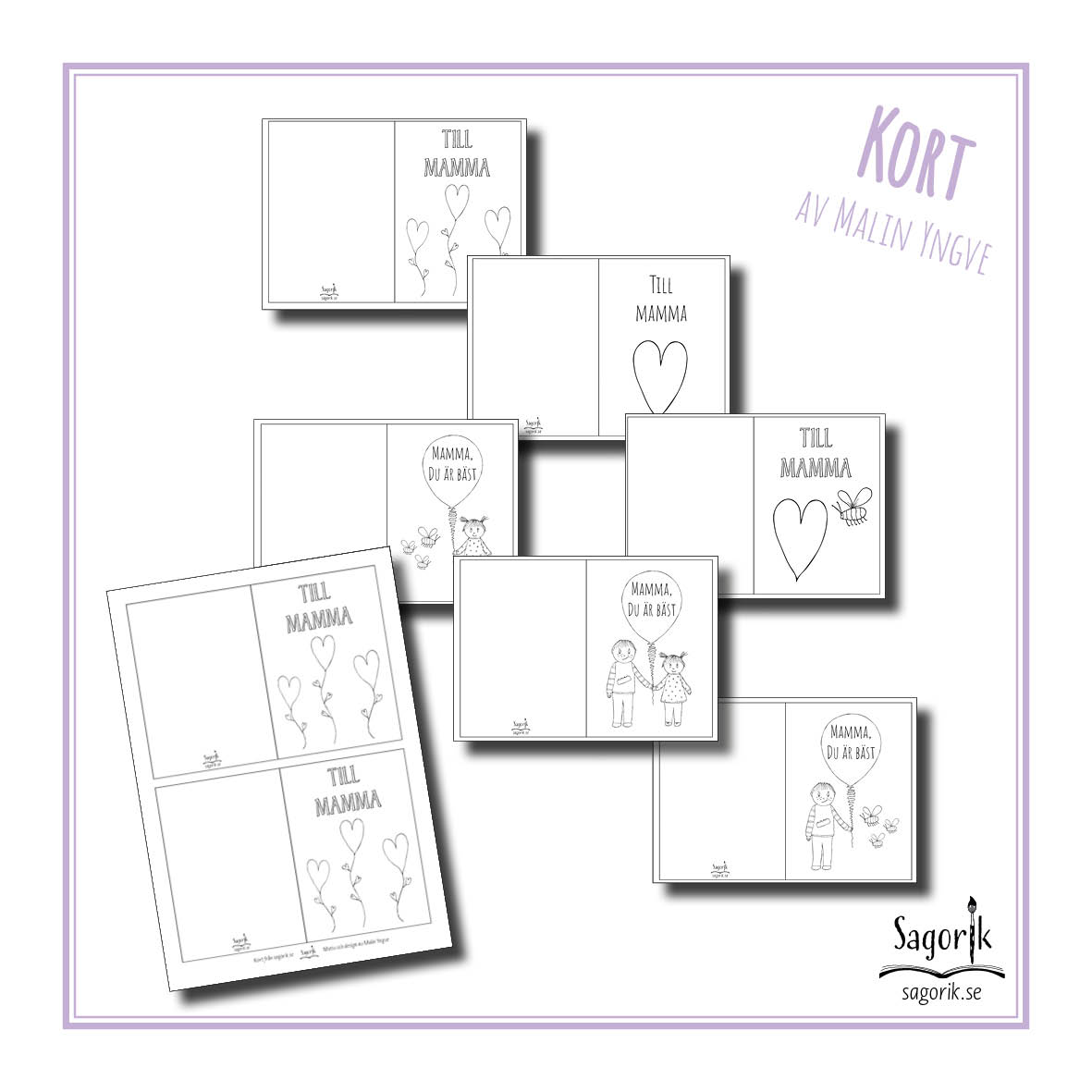 Innehåller sex olika designer av kort som eleverna själva kan färglägga och ge bort till sin mamma på mors dag. Färglägg, klipp ut och vik till ett kort. Inuti korten finns plats att skriva en hälsning.