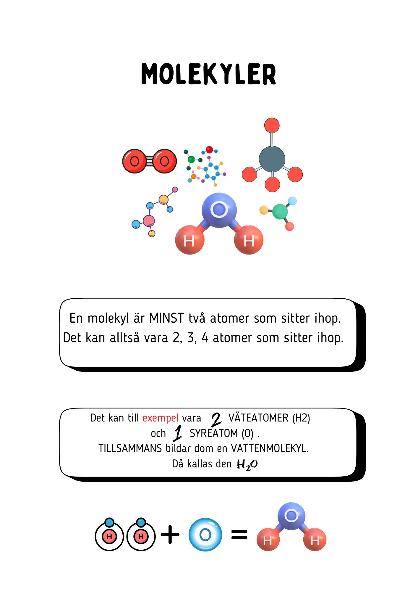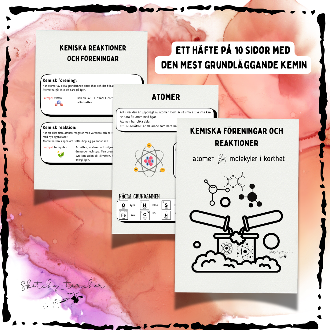 Ett häfte på 10 sidor som innehåller den allra mest grundläggande kemin. Tänkt att vara kompliment till genomgångar, filmer, häften och arbeten.