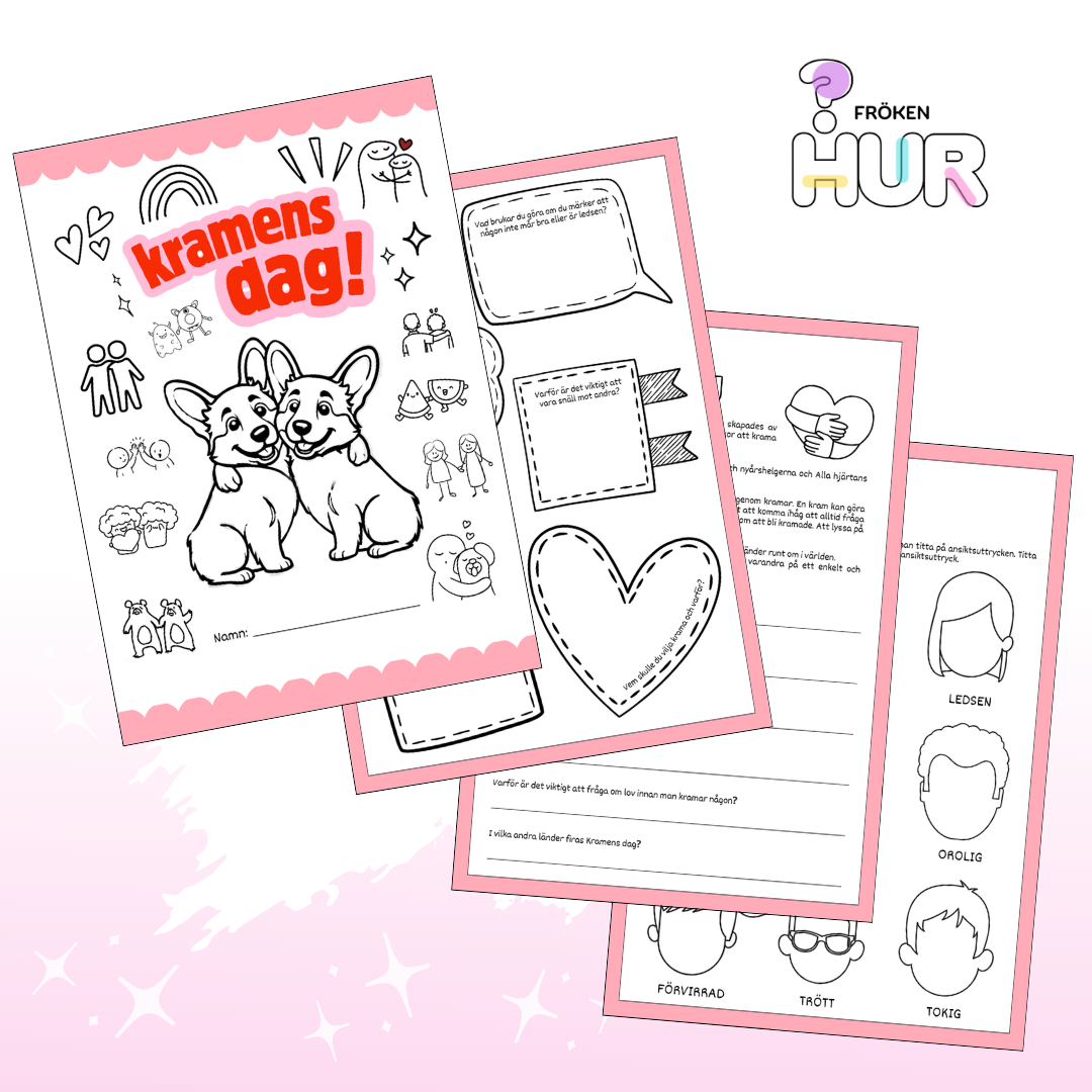 - Läsförståelseblad: En text om Kramens dag med tillhörande frågor för att stärka elevernas läsförståelse.