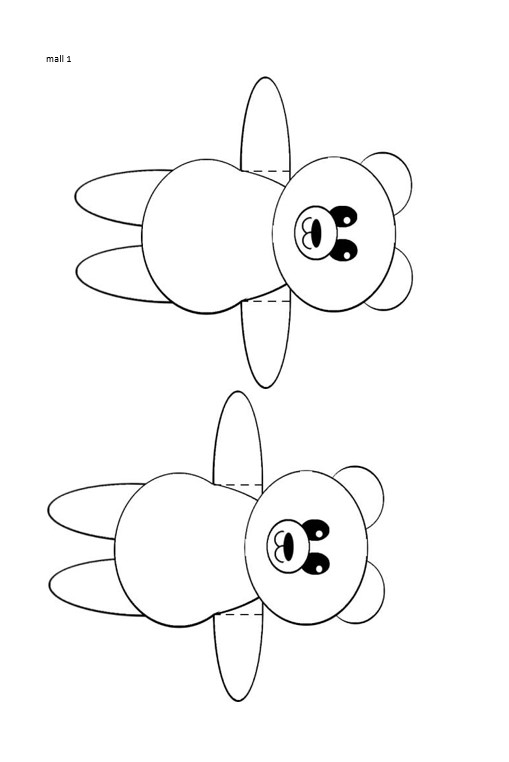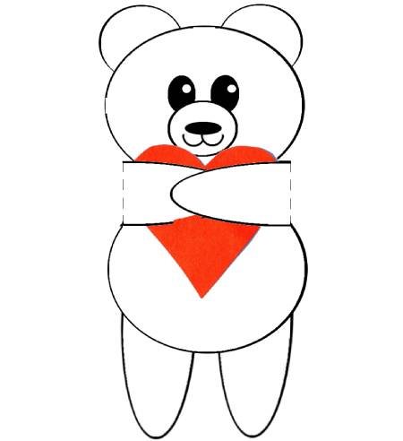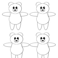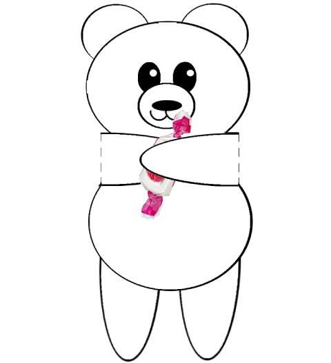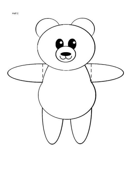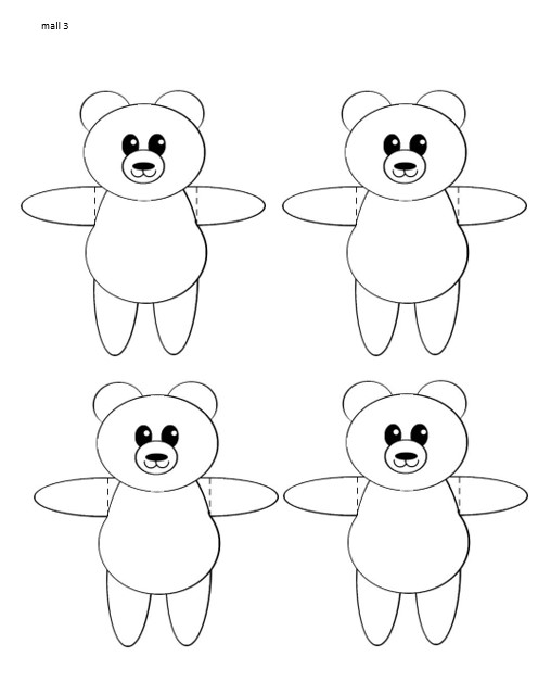 En mall av en nalle i olika storlekar där du viker armarna för att forma en kram.