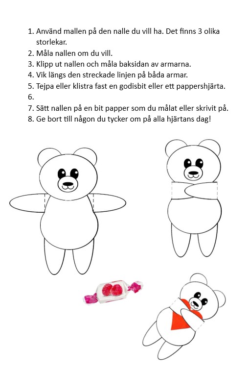 Nallen kan användas för att rita ett hjärta som nalle håller eller ge bort en godisbit.