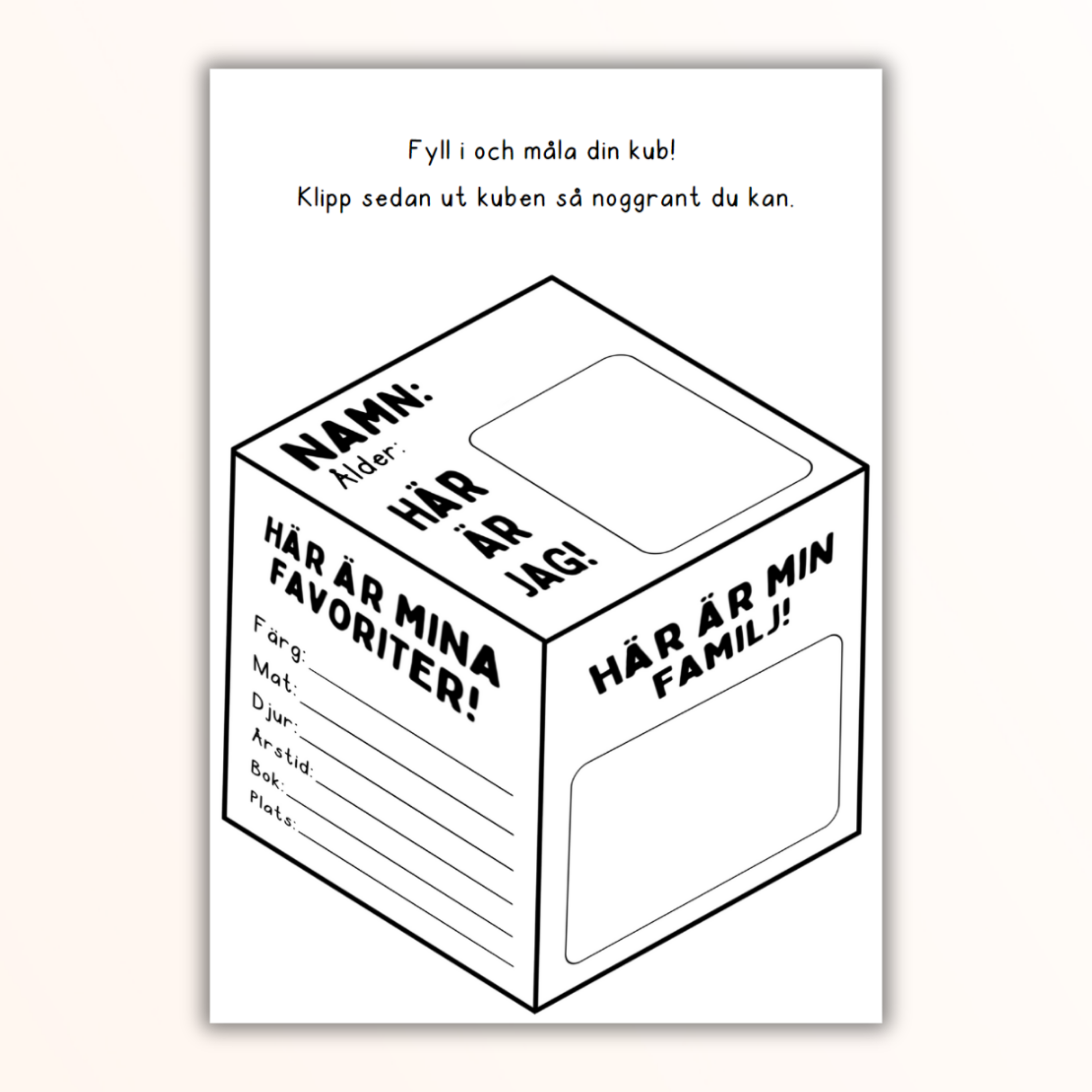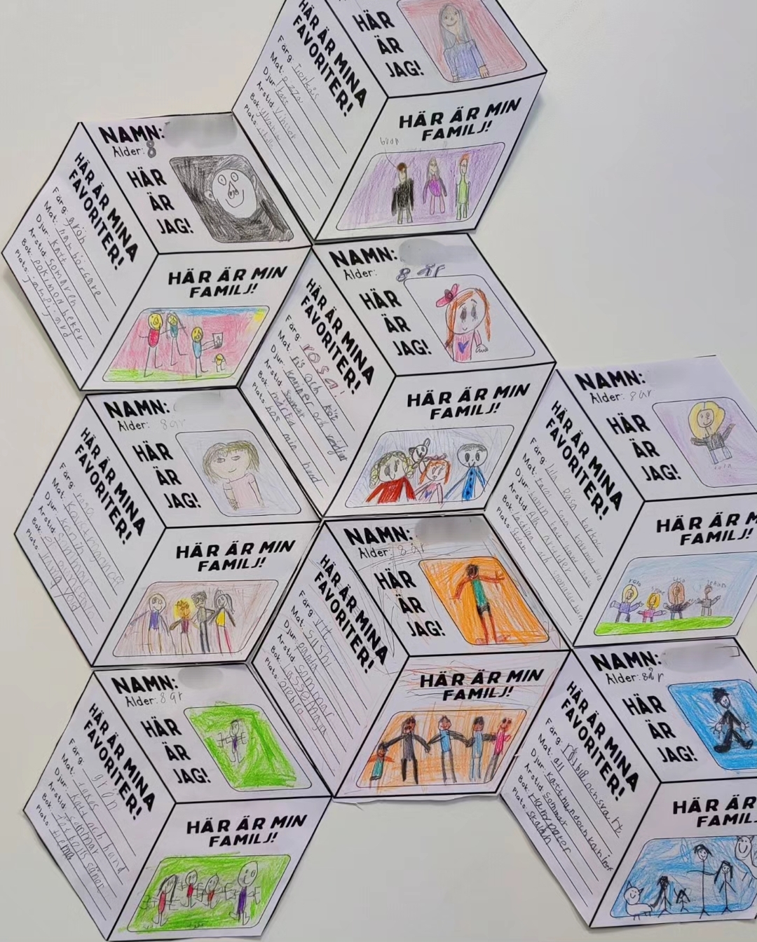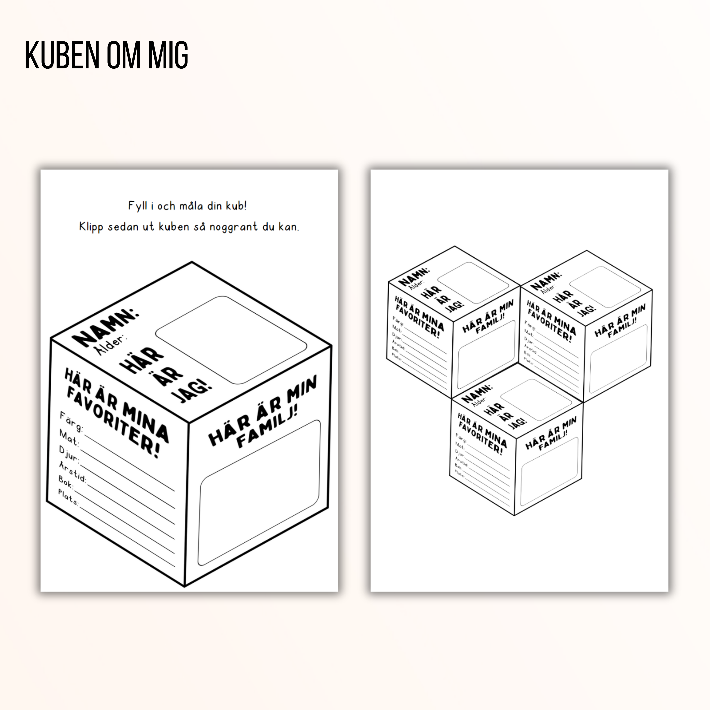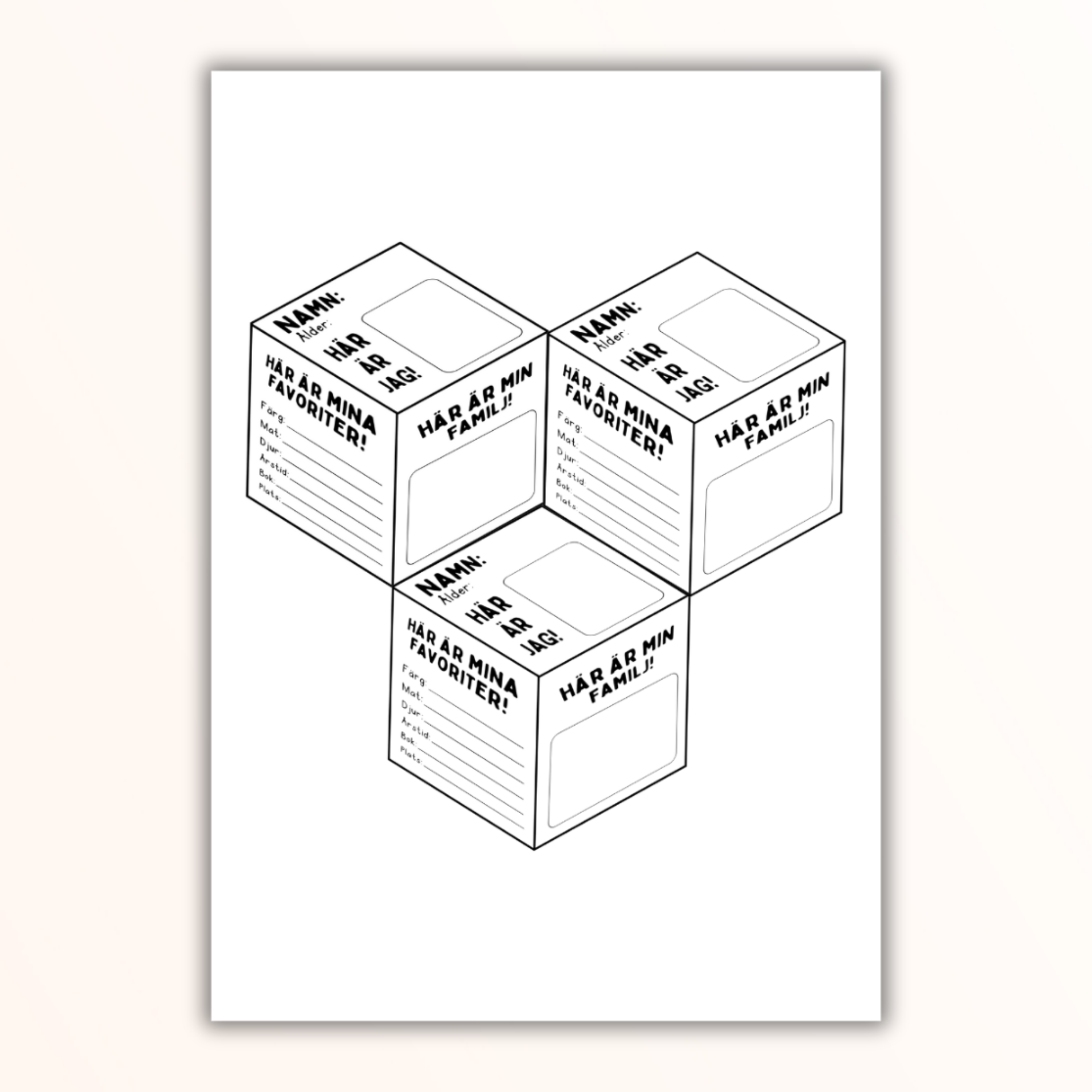 Låt eleverna göra en kub om sig själva och sina favoritsaker! Sätt upp kuberna bredvid varandra för en häftig 3D-effekt.