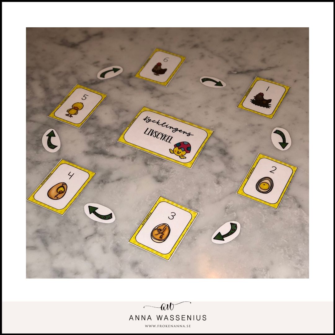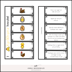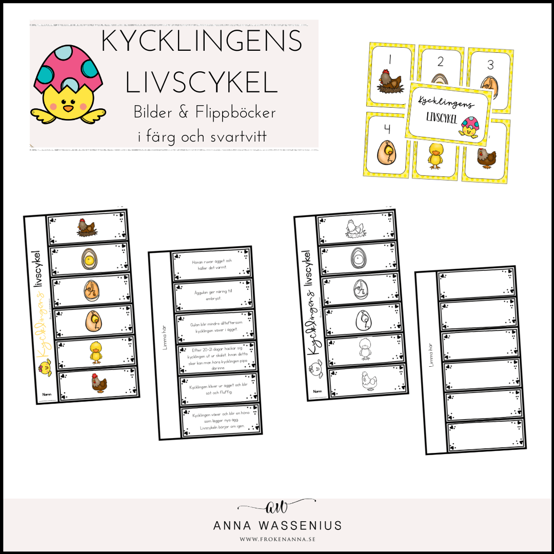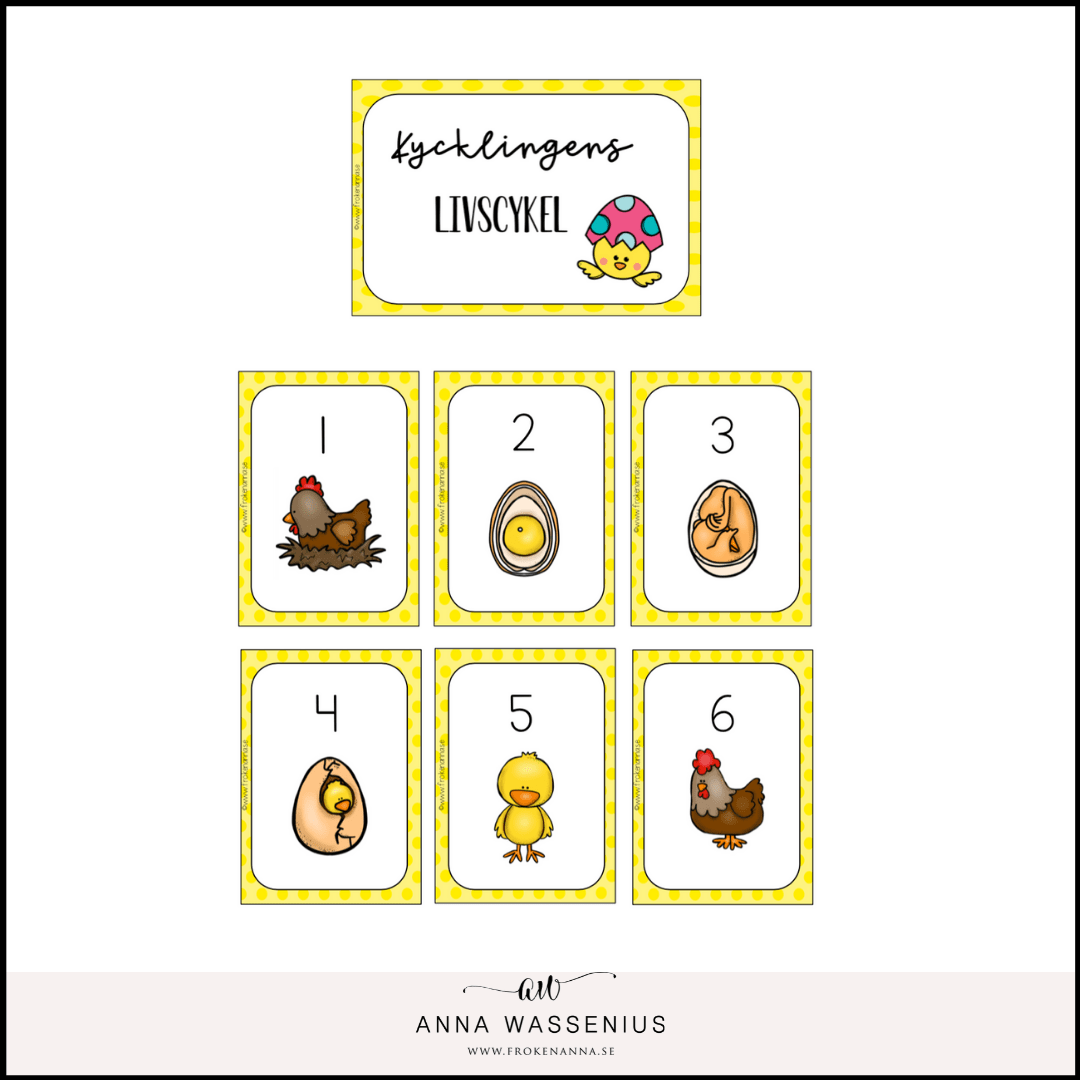- Bilder över kycklingens livscykel till lärarens demonstration. Sätt med fördel sedan upp bilderna på tavlan eller en vägg så eleverna kan bekanta sig med cykeln efteråt. (Dessa finns enbart i färg)