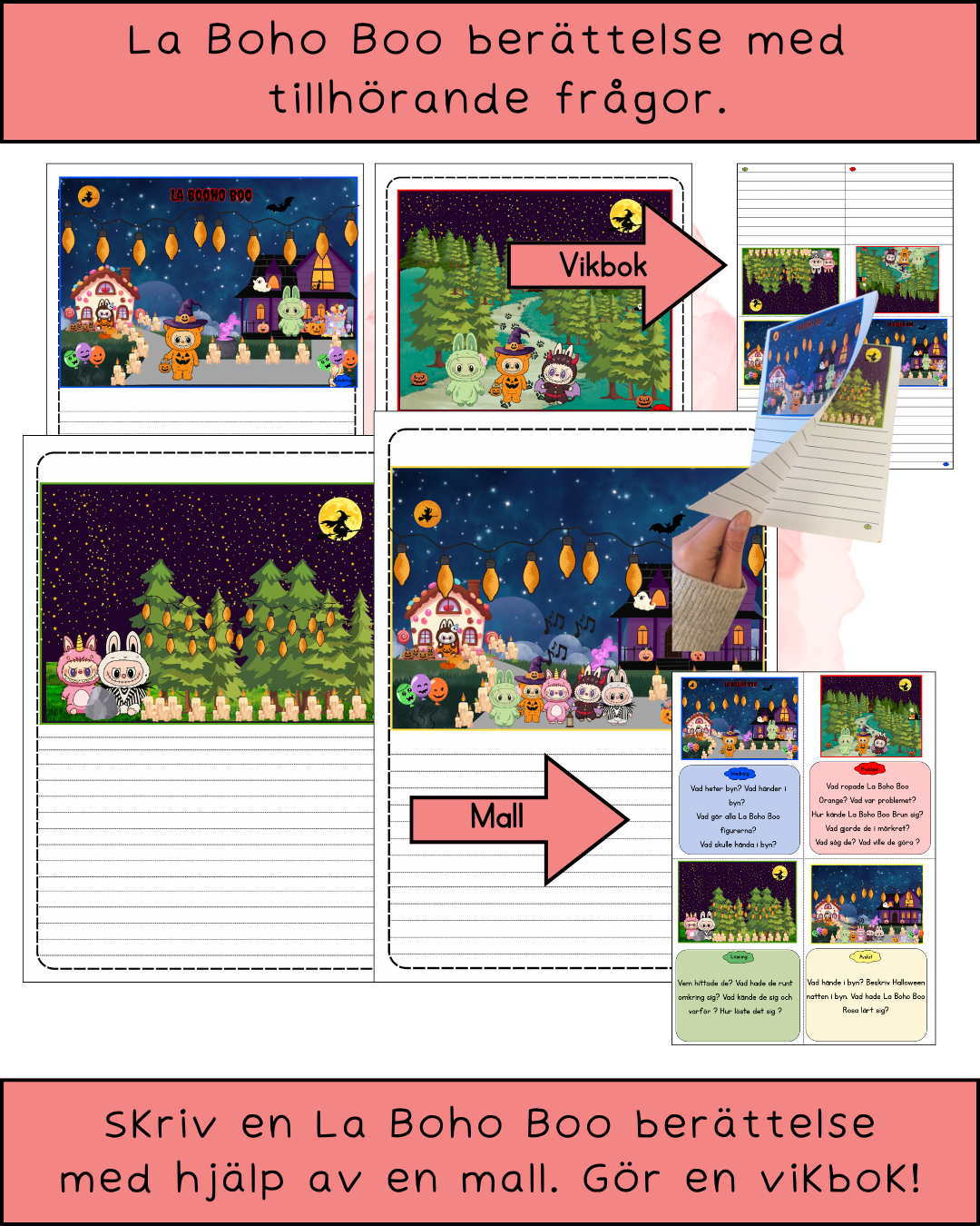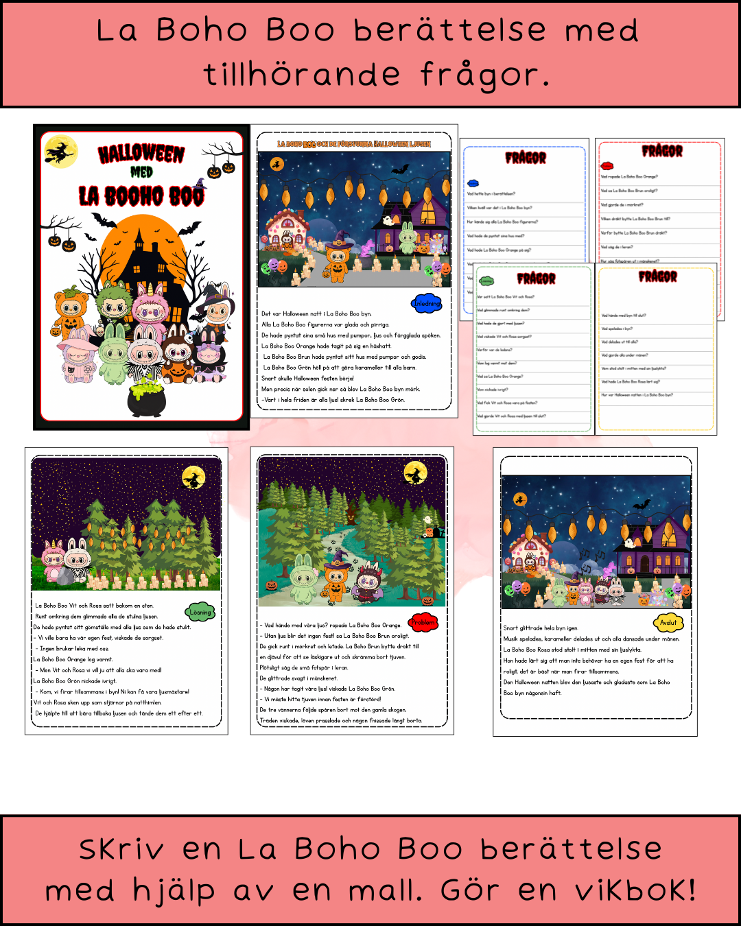 Detta arbetsmaterial utgår från berättelsen Halloween med La Boho Boo. Eleverna kommer att: