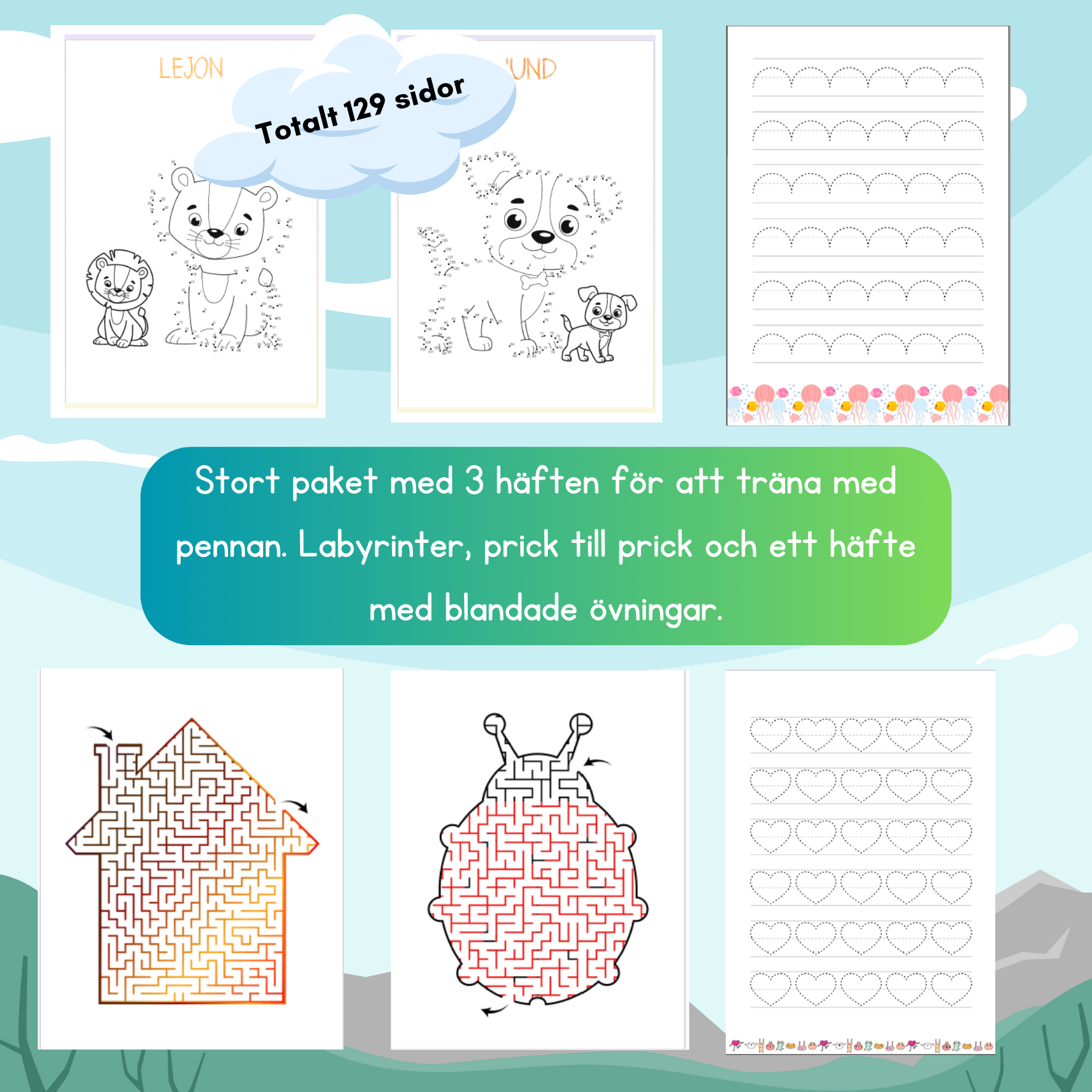 Här är ett stort häfte där eleverna får träna sin finmotorik. 43 sidor med varierande svårighetsgrad.