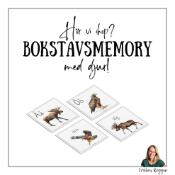 Det finns också ett memoryspel som kan användas till rutinen “Hör vi ihop”, samt ett väggalfabet och kort för rutinen “Jag har, vem har” med samma djur.