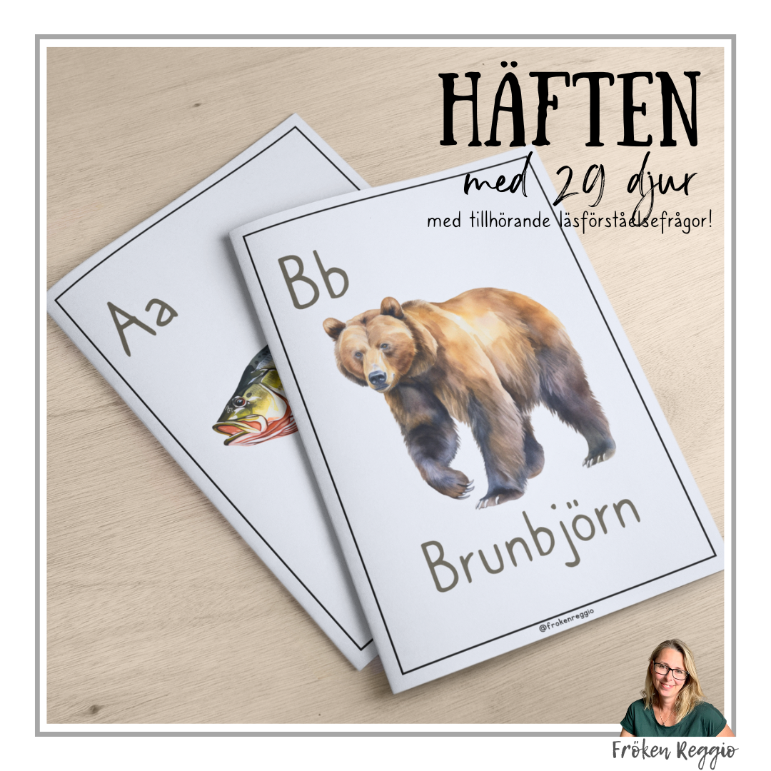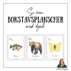 Det finns också ett memoryspel som kan användas till rutinen “Hör vi ihop”, samt ett väggalfabet och kort för rutinen “Jag har, vem har” med samma djur.