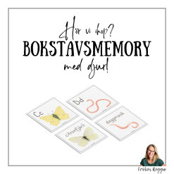Det finns också ett memoryspel som kan användas till rutinen “Hör vi ihop”, samt ett väggalfabet och kort för rutinen “Jag har, vem har” med samma djur.