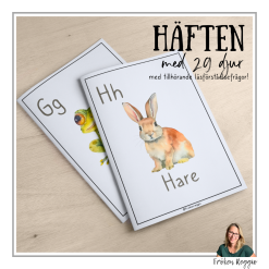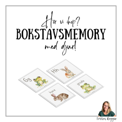 Det finns också ett memoryspel som kan användas till rutinen “Hör vi ihop”, samt ett väggalfabet och kort för rutinen “Jag har, vem har” med samma djur.