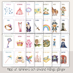 Materialet är utformat för att stödja språkutveckling och läsinlärning genom att kombinera visuella och textbaserade aktiviteter.