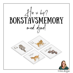 Det finns också ett memoryspel som kan användas till rutinen “Hör vi ihop”, samt ett väggalfabet och kort för rutinen “Jag har, vem har” med samma djur.
