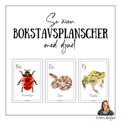 Det finns också ett memoryspel som kan användas till rutinen “Hör vi ihop”, samt ett väggalfabet och kort för rutinen “Jag har, vem har” med samma djur.
