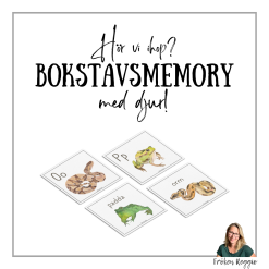 Det finns också ett memoryspel som kan användas till rutinen “Hör vi ihop”, samt ett väggalfabet och kort för rutinen “Jag har, vem har” med samma djur.