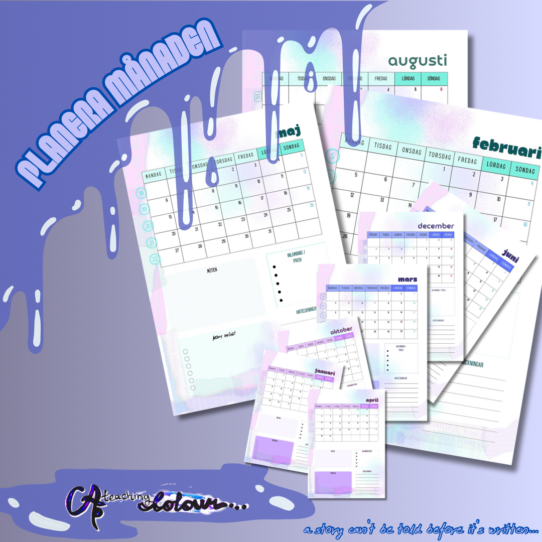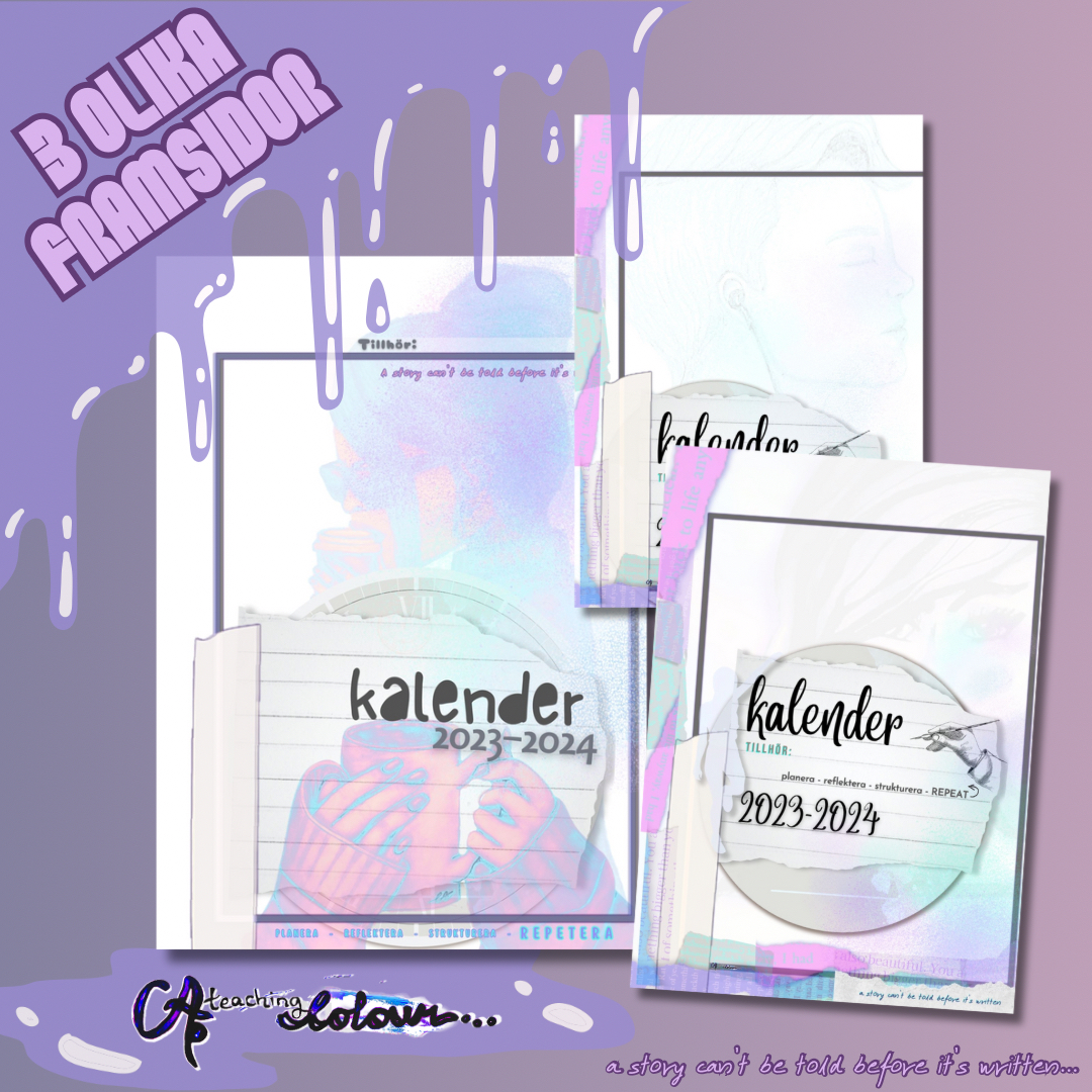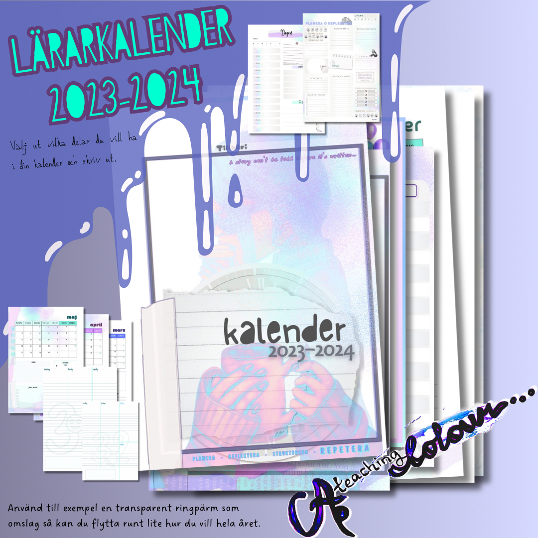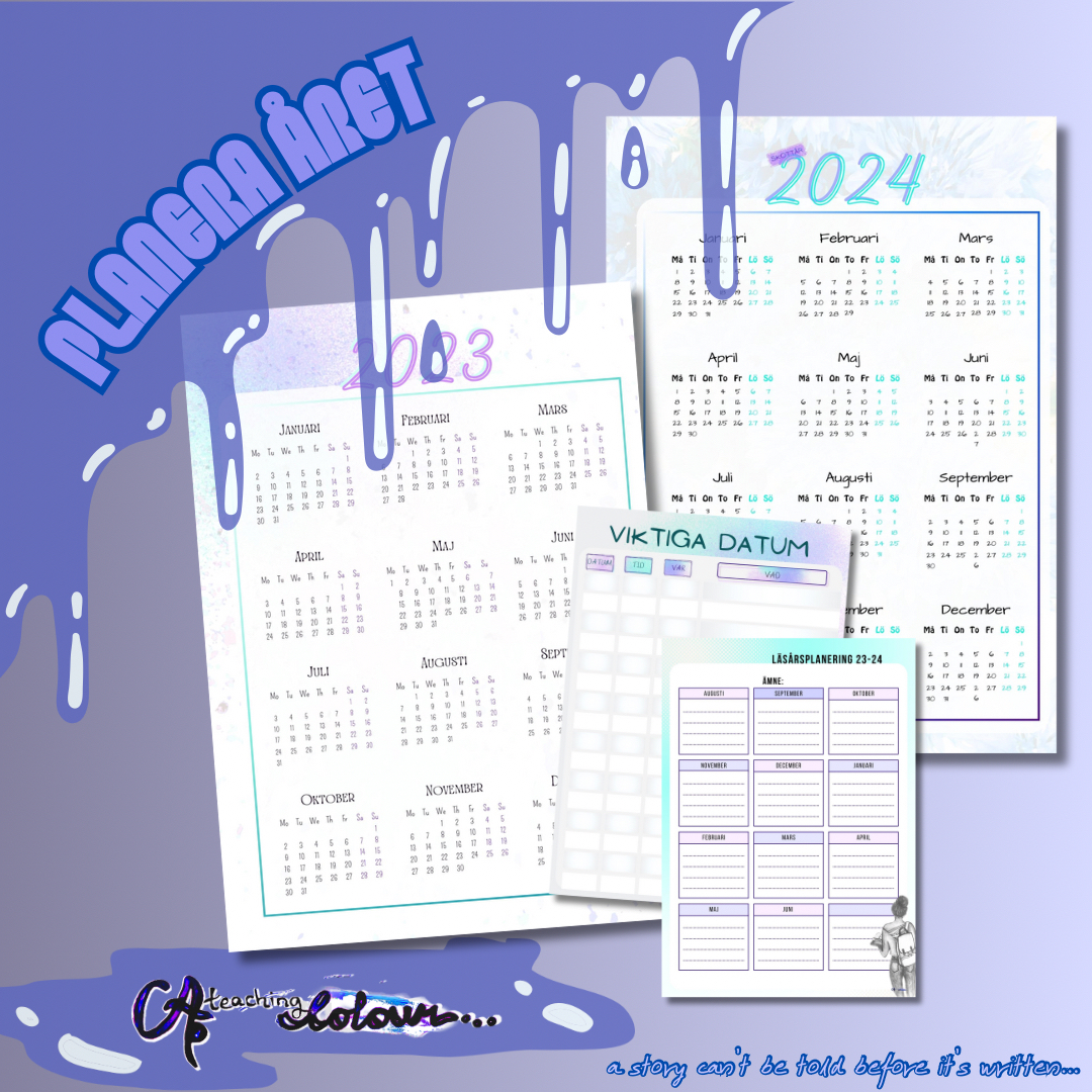 En kalender för läsåret 23-24, Materialet består av 4 PDF-filer för att det ska bli enklare att ladda ner och skriva ut.