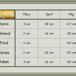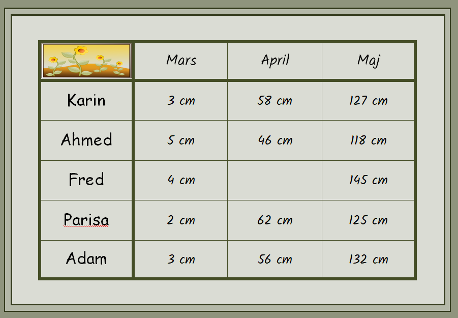 Klassen har planterat solrosor och fyllt i en tabell. Nu ska dina elever läsa av tabellen, jämföra längder samt ev fylla i linjediagrammet.