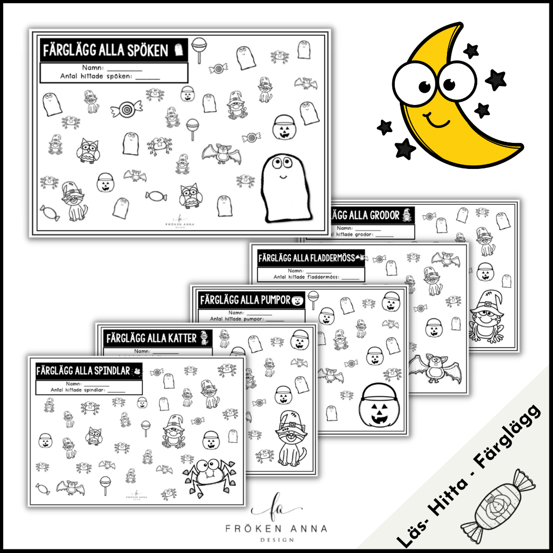 Detta ingår i Läs-hitta-färglägg-räkna Halloween