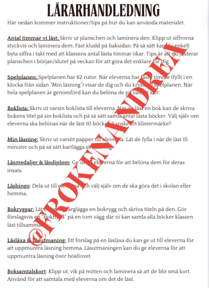 Ett material med 13 olika delar. Perfekt för att hålla i gång läsningen och för att väcka läslust hos eleverna.