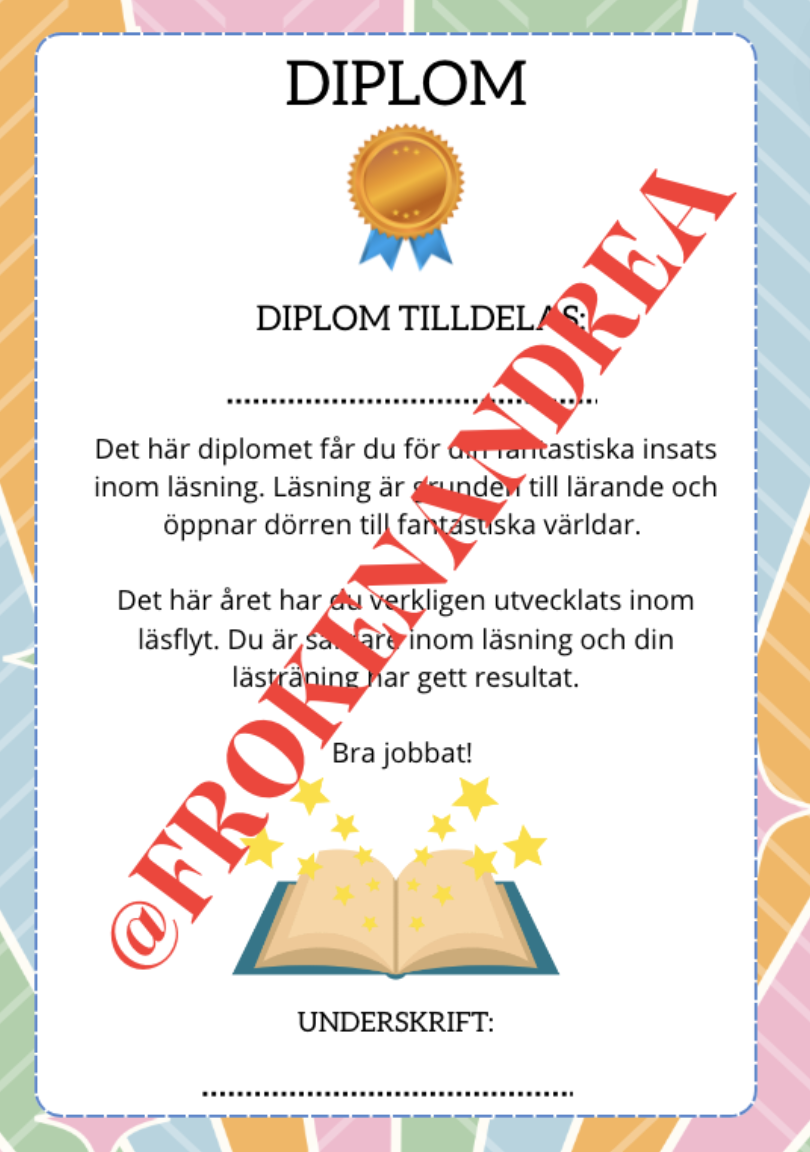 7. Två olika sorters läsdiplom för att belöna eleverna för deras insats.