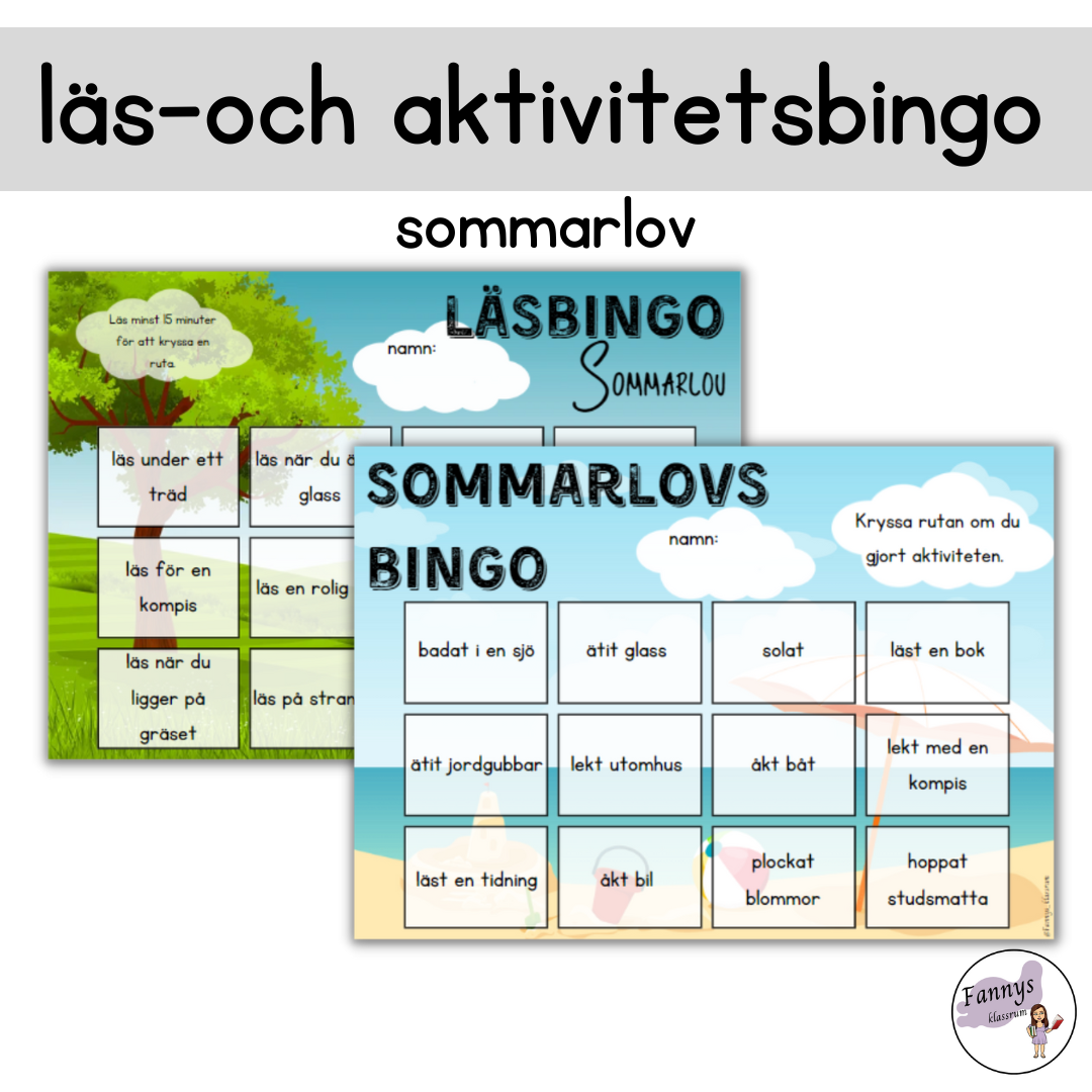 Sommarlovsbingo i två delar. Ett med sommaraktiviteter och ett med läsning. Perfekt att ge eleverna inför sommarlovet för att främja till rörelse och läsning.