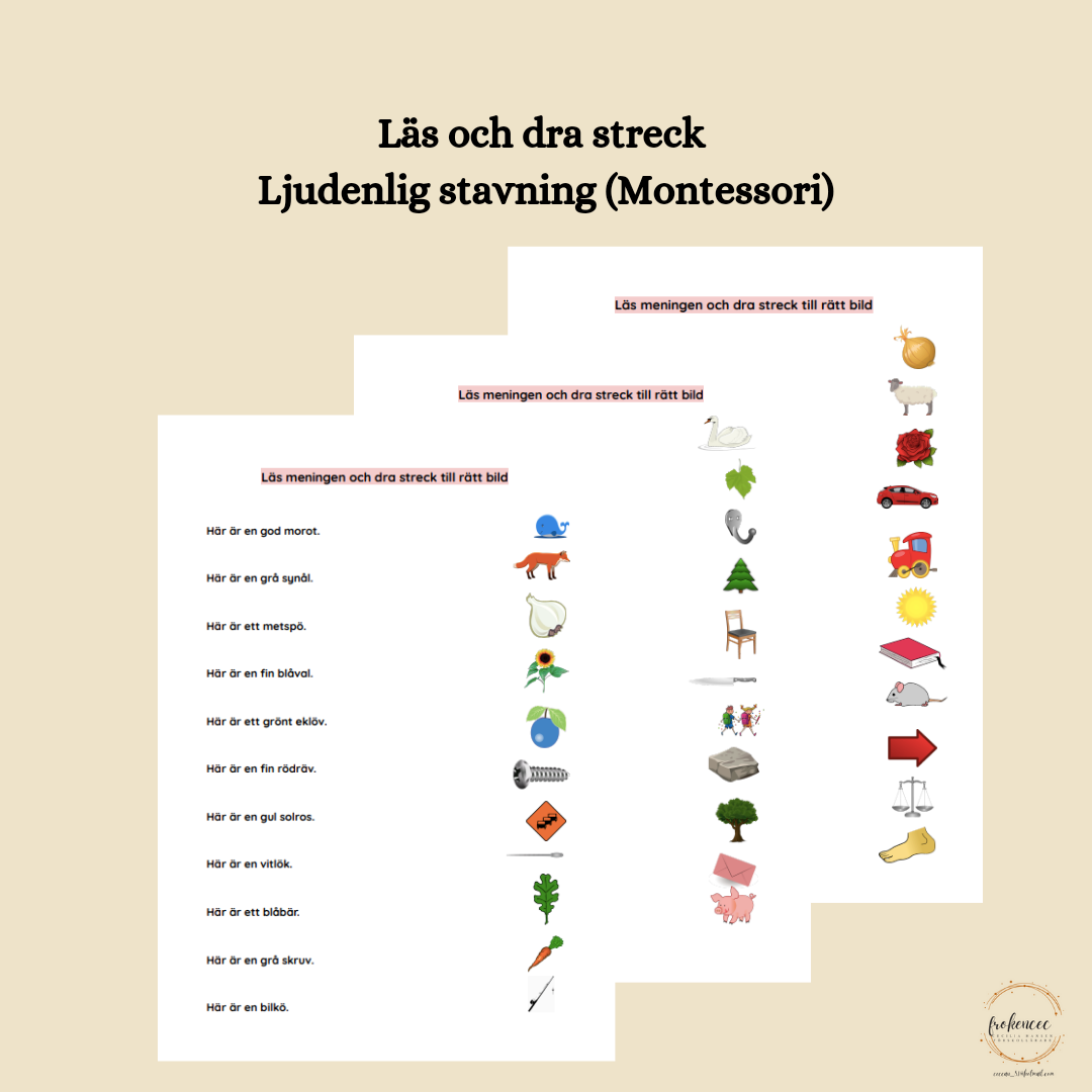 Läs och dra streck – Ljudenlig stavning (Montessori)