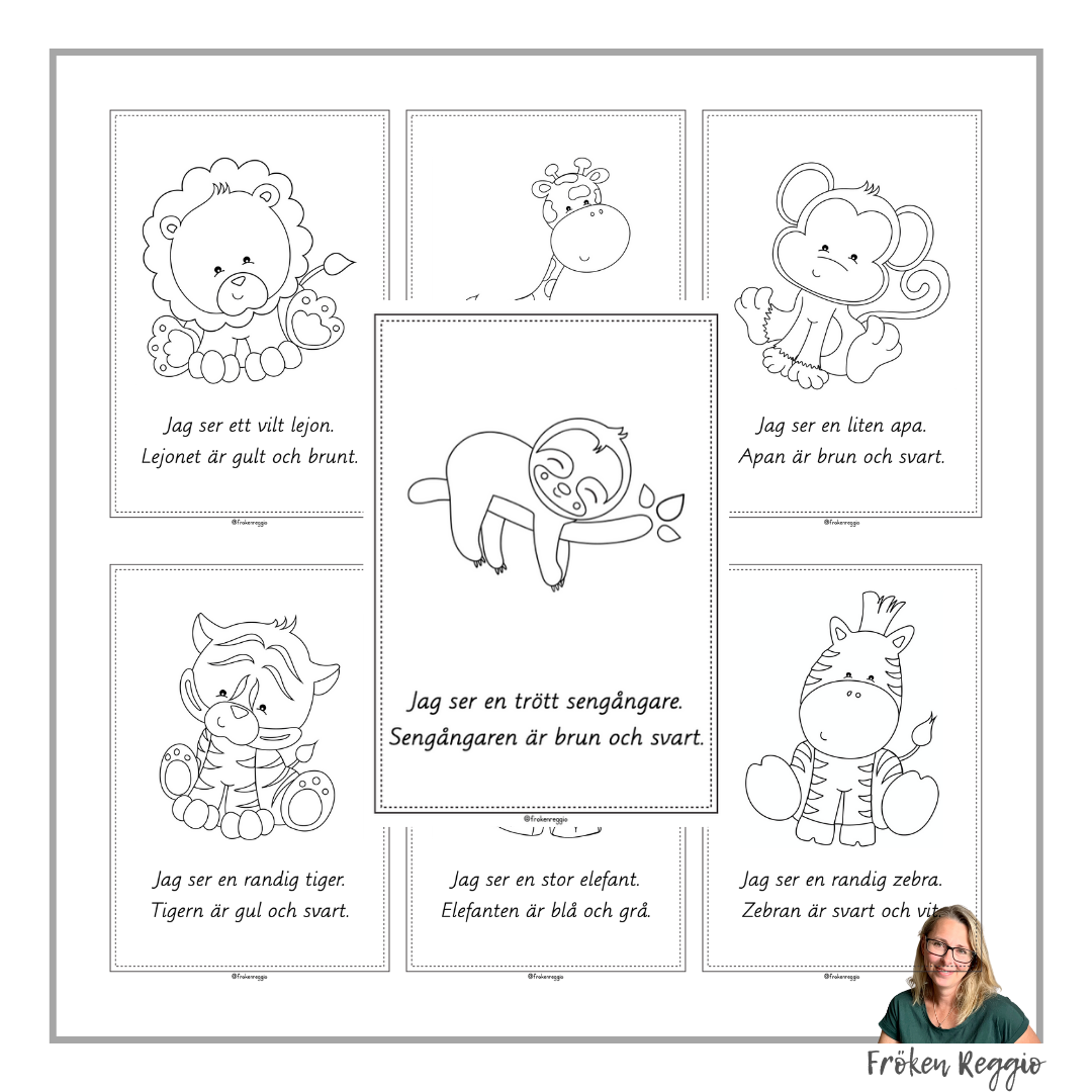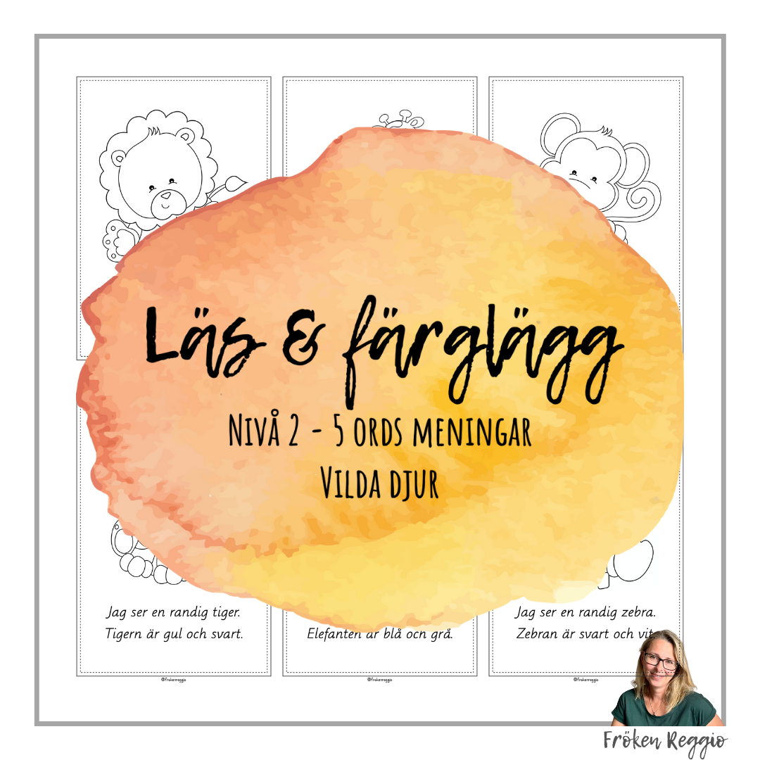 Läs och färglägg enkla texter – Nivå 2 Vilda djur