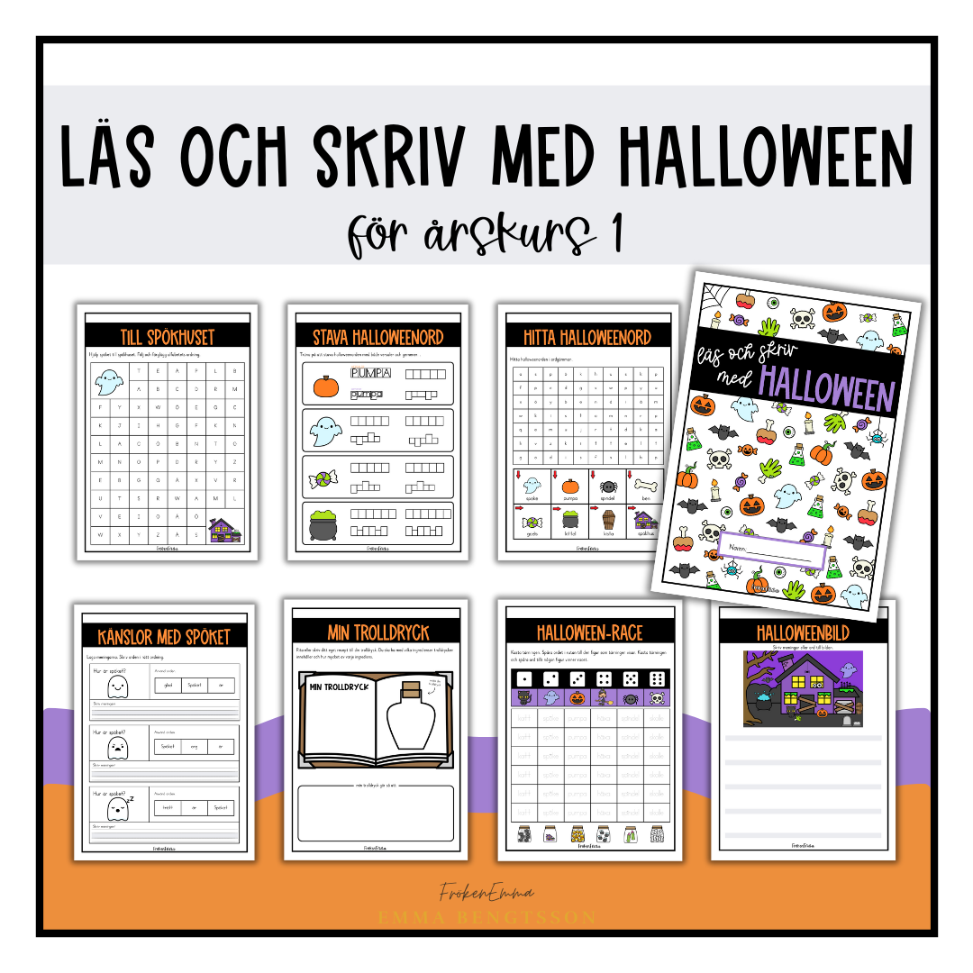 Träna på att läsa och skriva med tema halloween! Perfekt nu innan eleverna går på läslov! Eller varför inte skicka med arbetshäftet hem under läslov? I detta arbetshäfte får eleverna träna på finmotorik, skriva, stava och att läsa. Se innehåll för varje sida nedan: