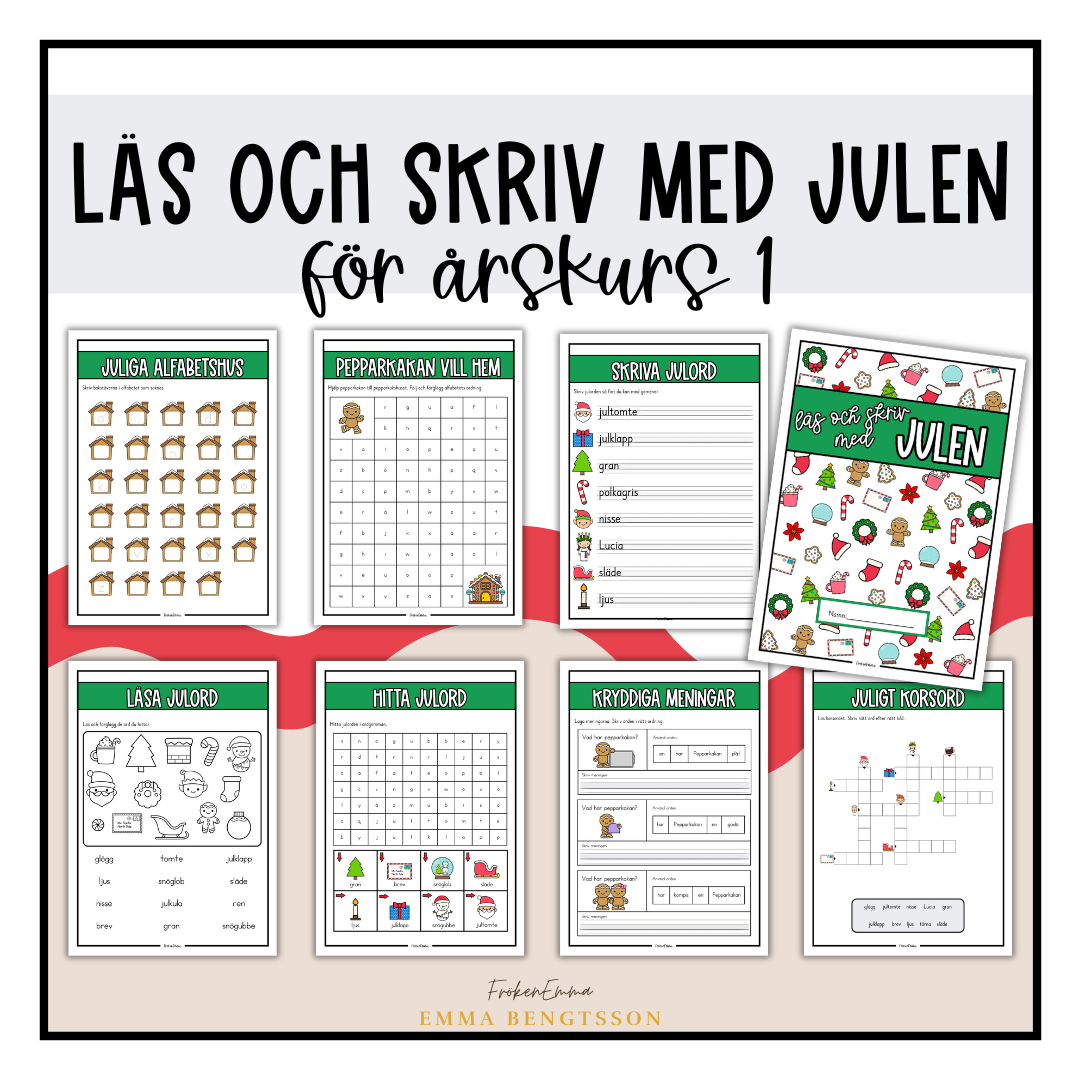 Träna på att läsa och skriva med tema julen! Perfekt att använda innan eleverna går på jullov. Eller varför inte skicka med arbetshäftet hem under lovet? I detta arbetshäfte får eleverna träna på finmotorik, skriva, stava och att läsa. Se innehåll för varje sida nedan: