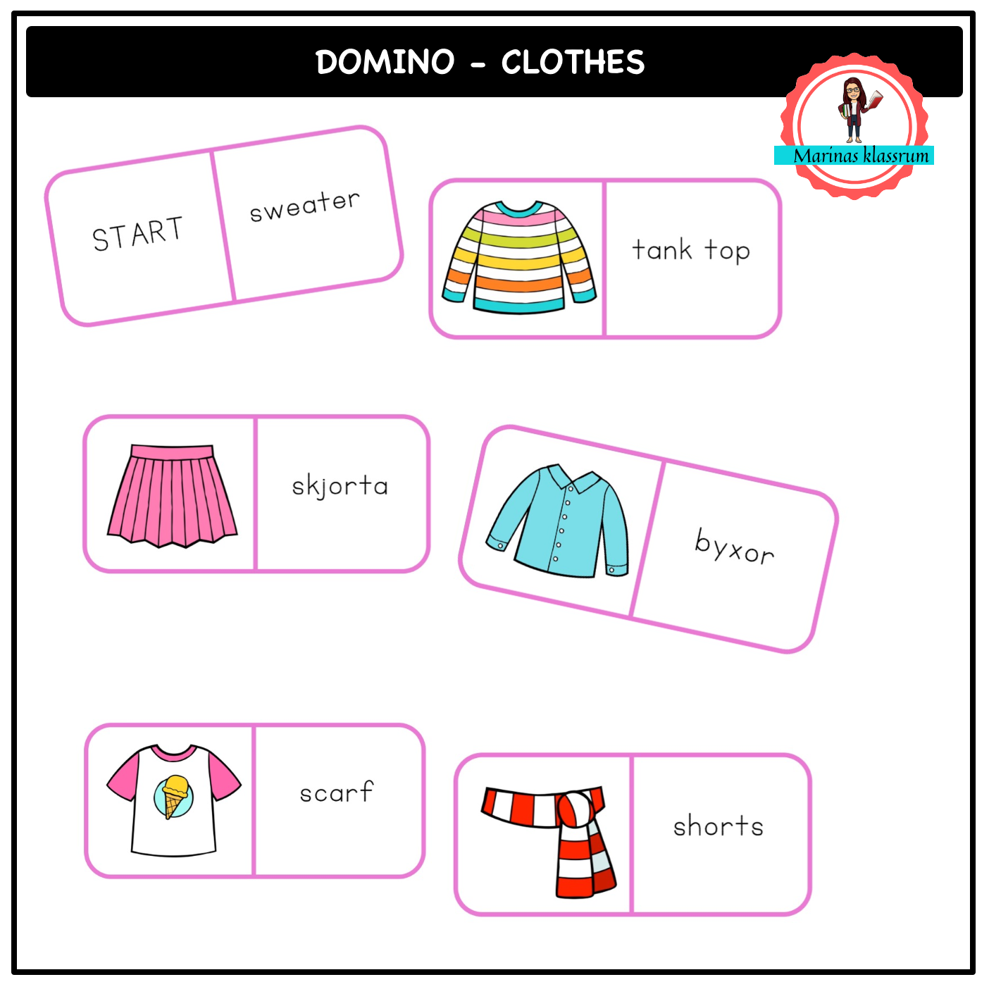 Läsdomino engelska + svenska – kläder