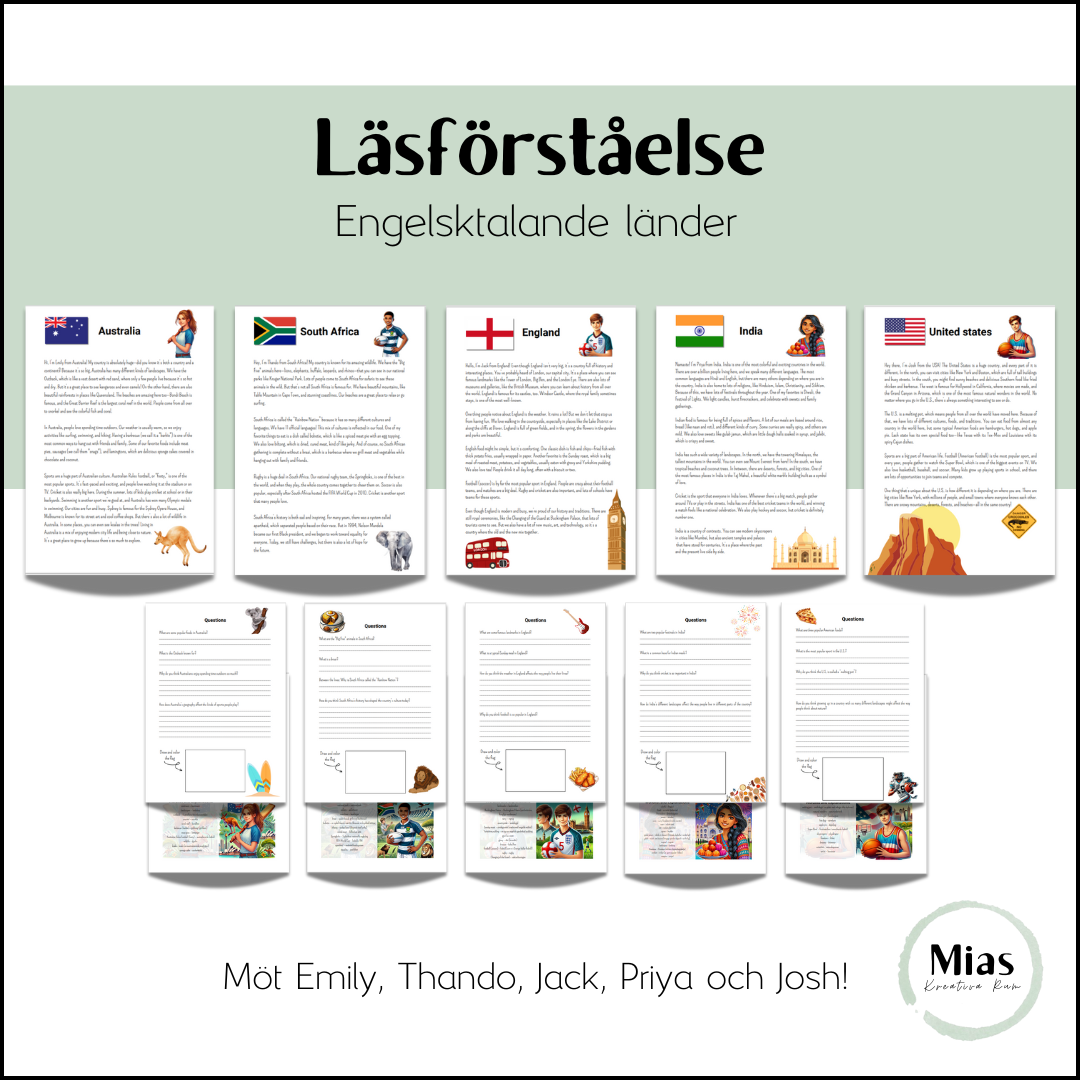 Här kommer ett läsförståelse material där eleverna får möta fem ungdomar som bor på andra delar av världen.