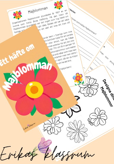 Detta är ett läsförståelsehäfte som handlar om historian om- och varför vi säljer majblommor i Sverige. Häftet ställer en rad frågor som kontrollerar elevernas läsförståelse där det hela avslutas med en färgläggningssida där eleverna får designa sina egna majblommor.