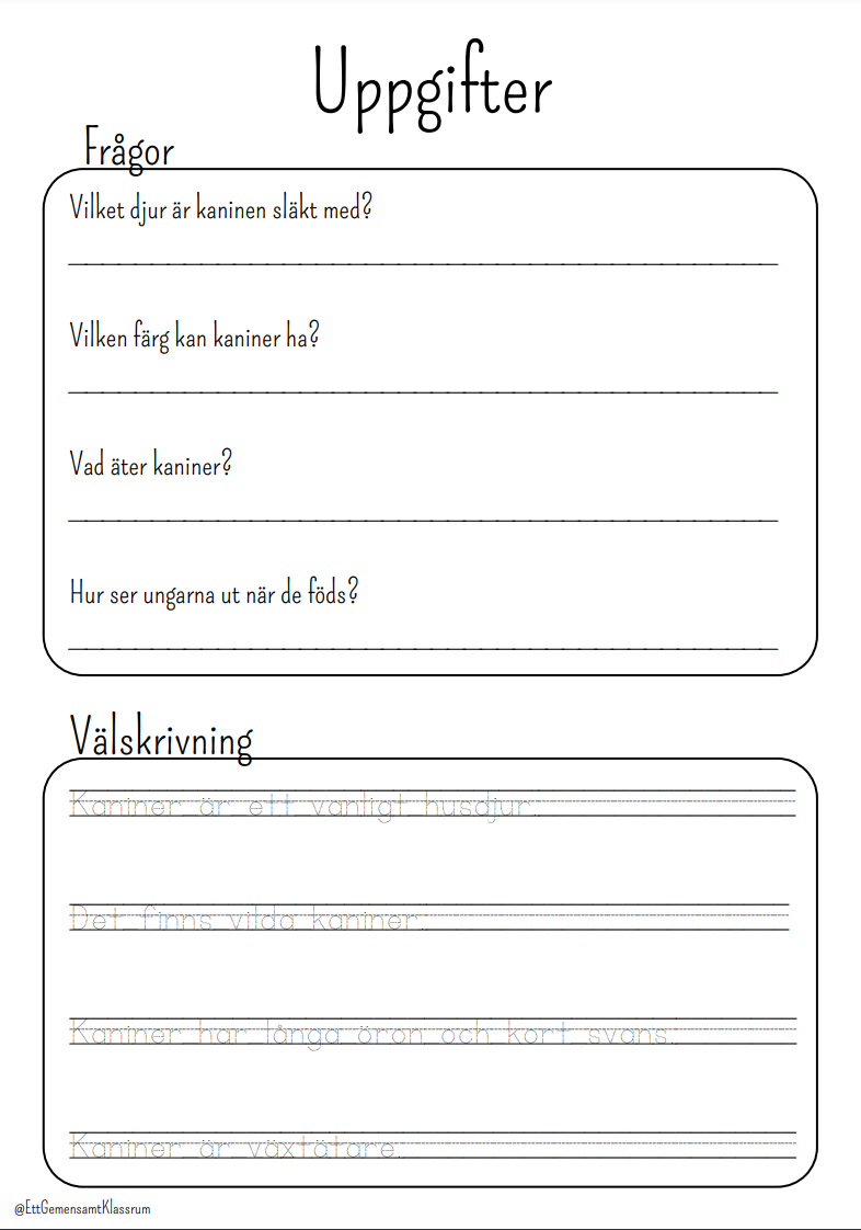 Ett arbetshäfte med läsförståelse om 6 olika djur, från hare och mus till lejon och isbjörn. Till varje text finns ett arbetsblad med frågor och välskrivning.