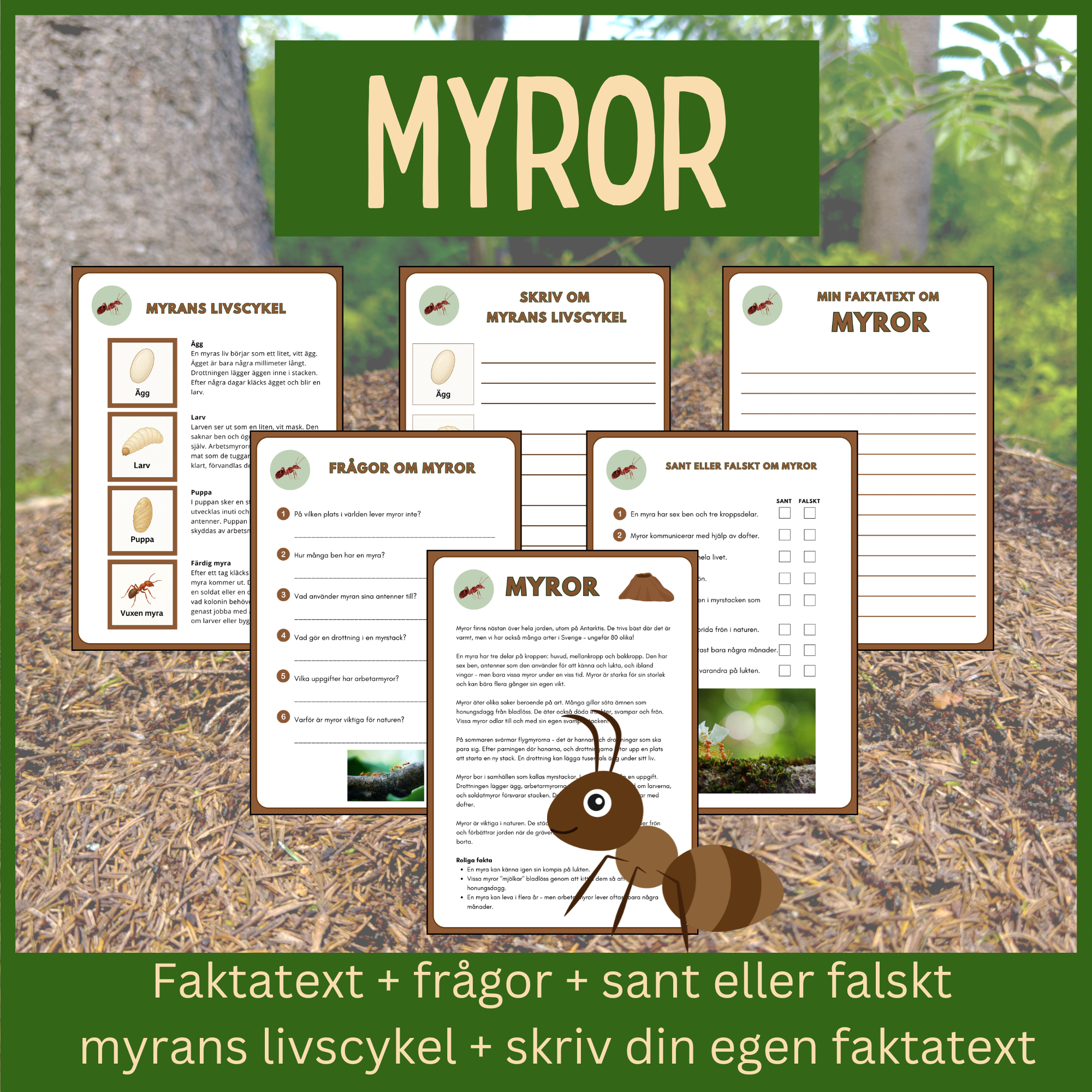 Detta ingår i Myror - läsförståelse och skrivuppgifter