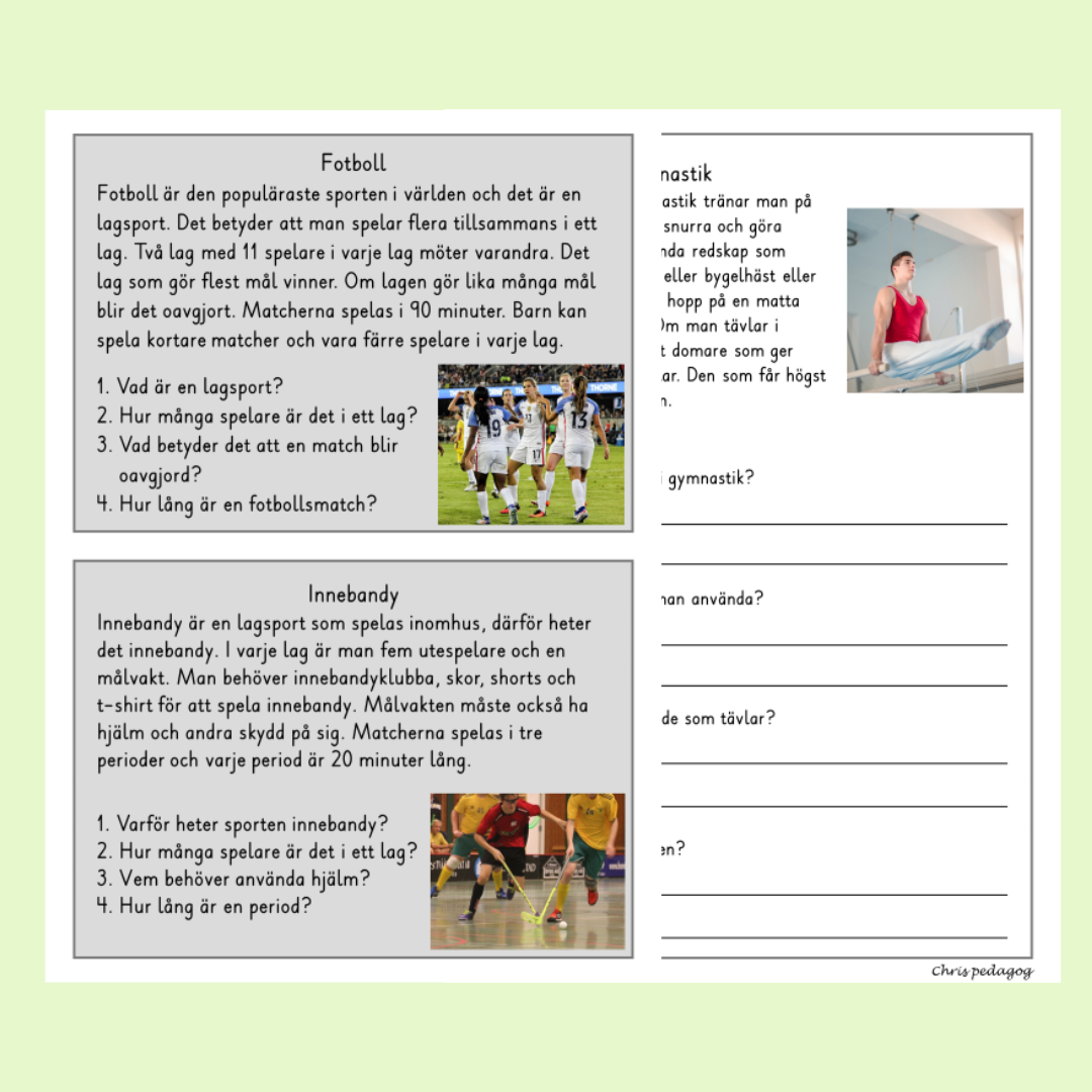 Detta ingår i Läsförståelse sport